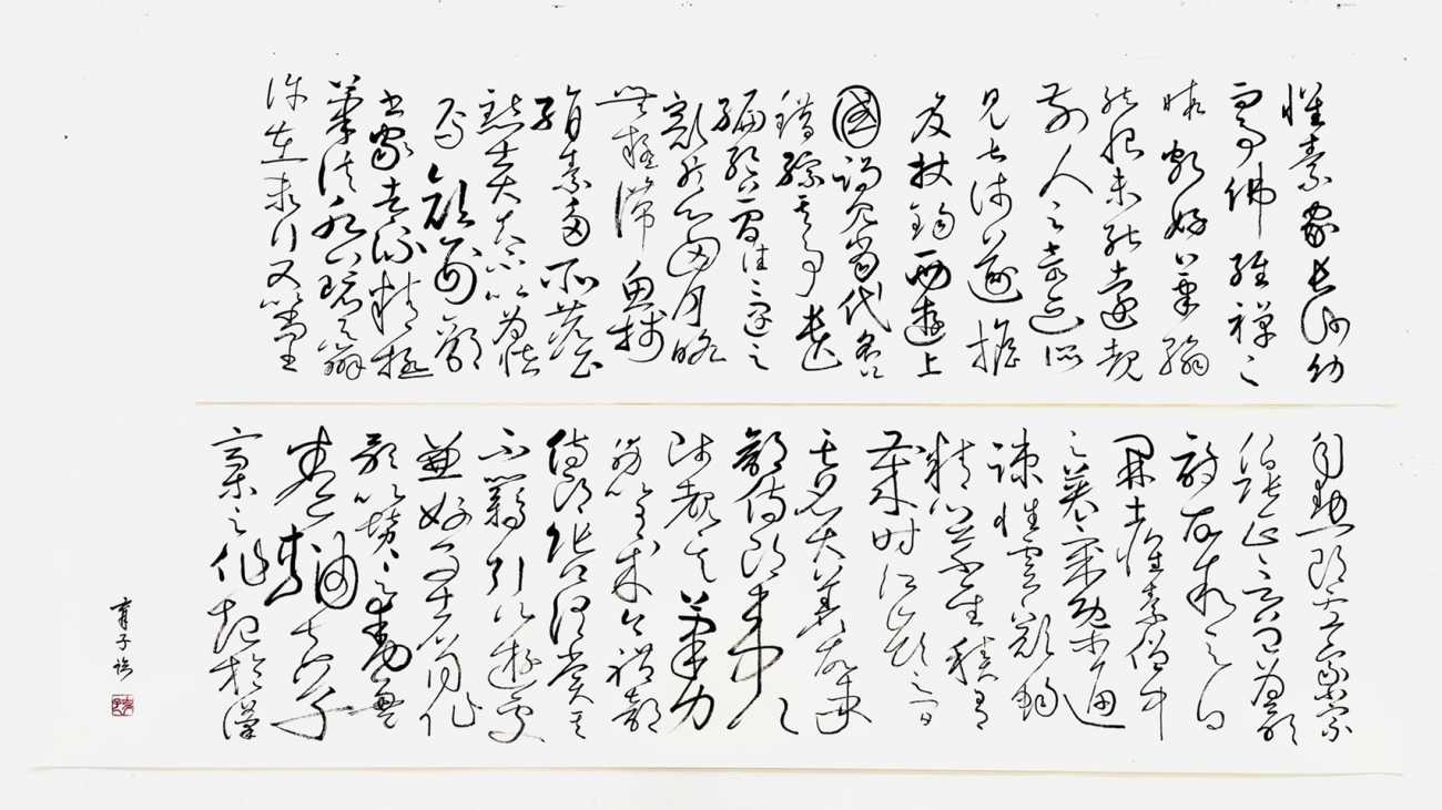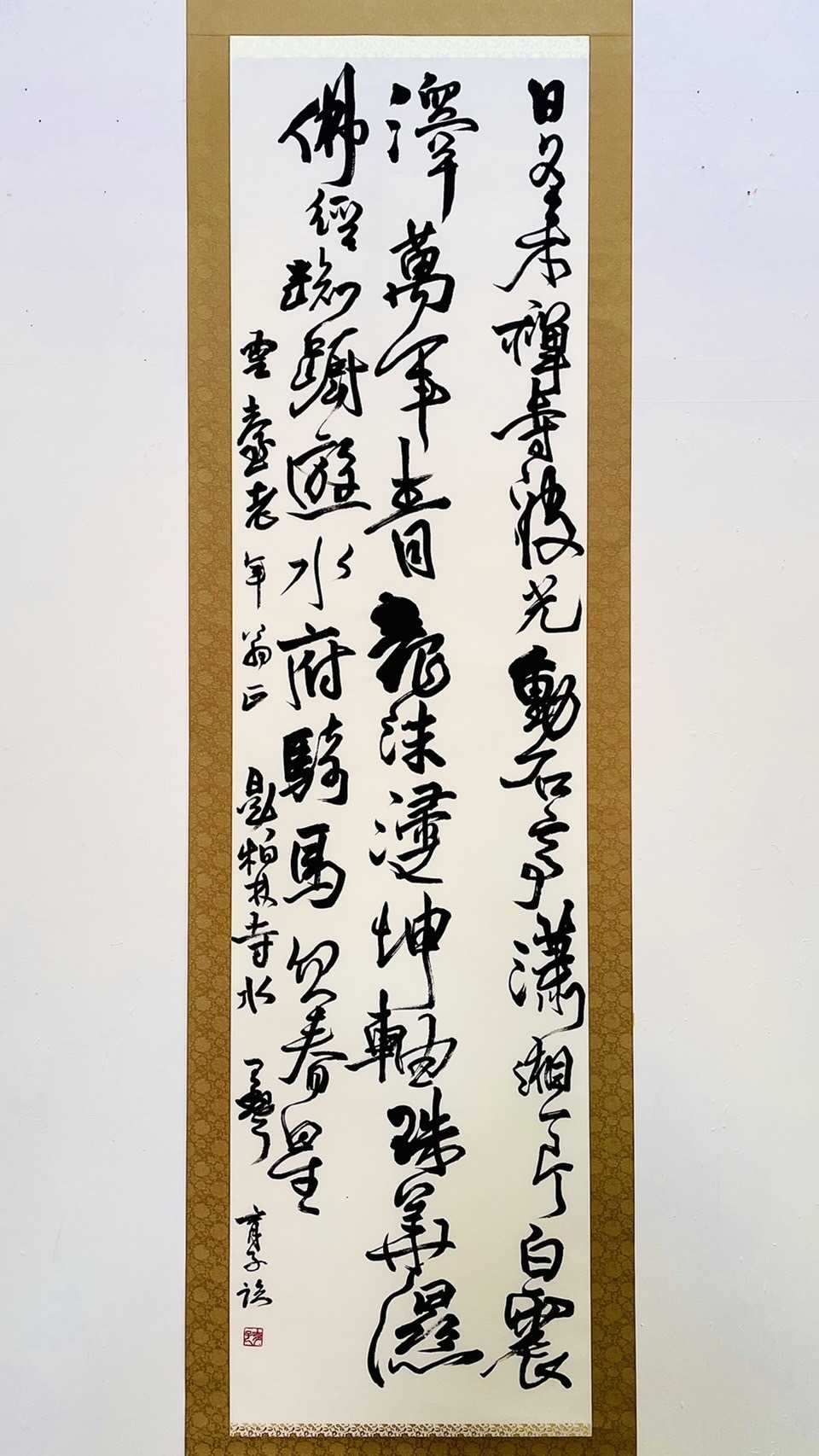 王鐸、懐素の全臨・節臨経験は大変楽しく意義深いものとなった。全臨の経験は構成意識を高め、臨書の大切さを改めて確認出来た。この作品は王鐸の集字をもとに倣書したものである。