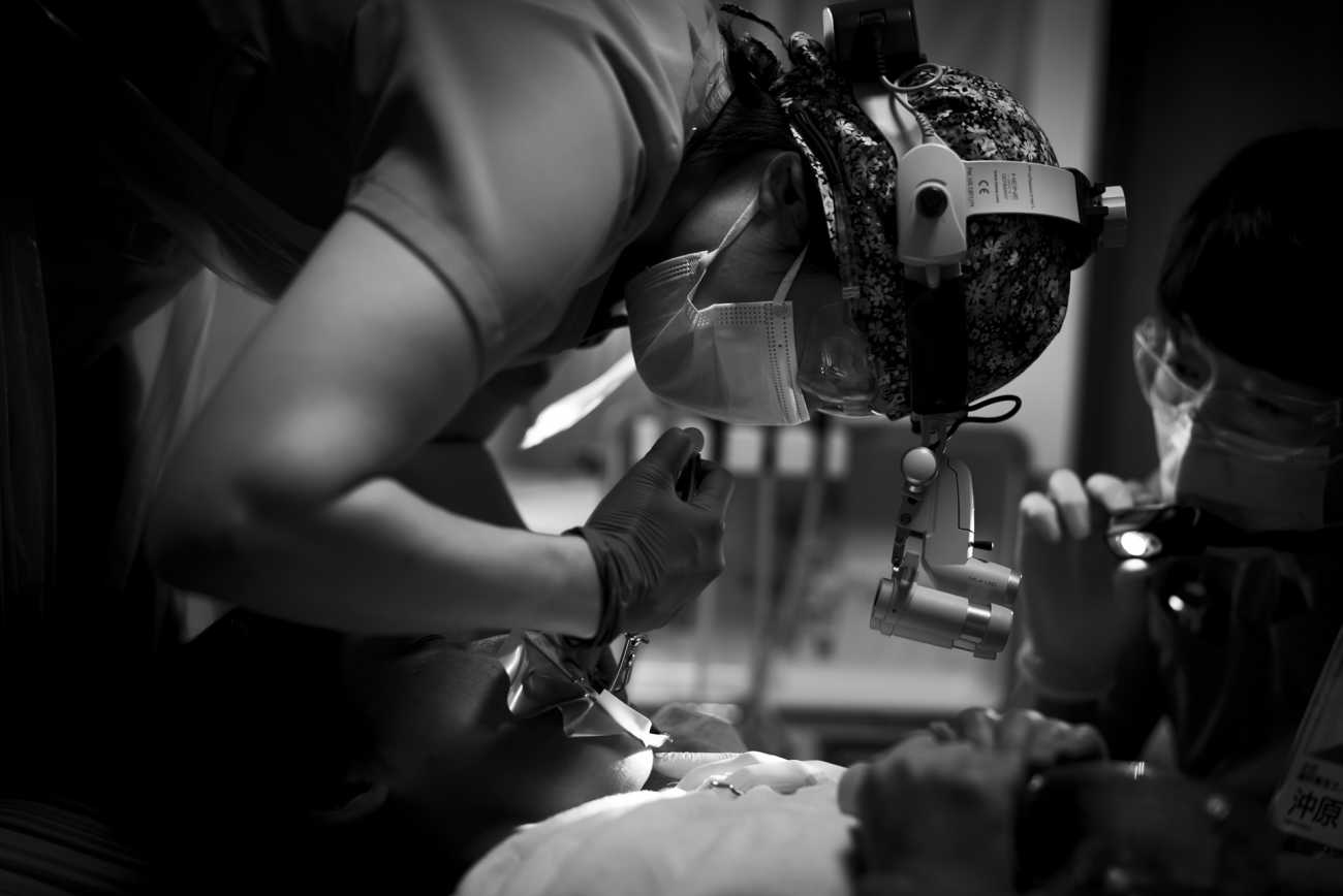 時に「ラバーダム防湿」という方法で治療する歯に唾液や細菌が入りこまない処置を行い、治療の精度を上げていきます。