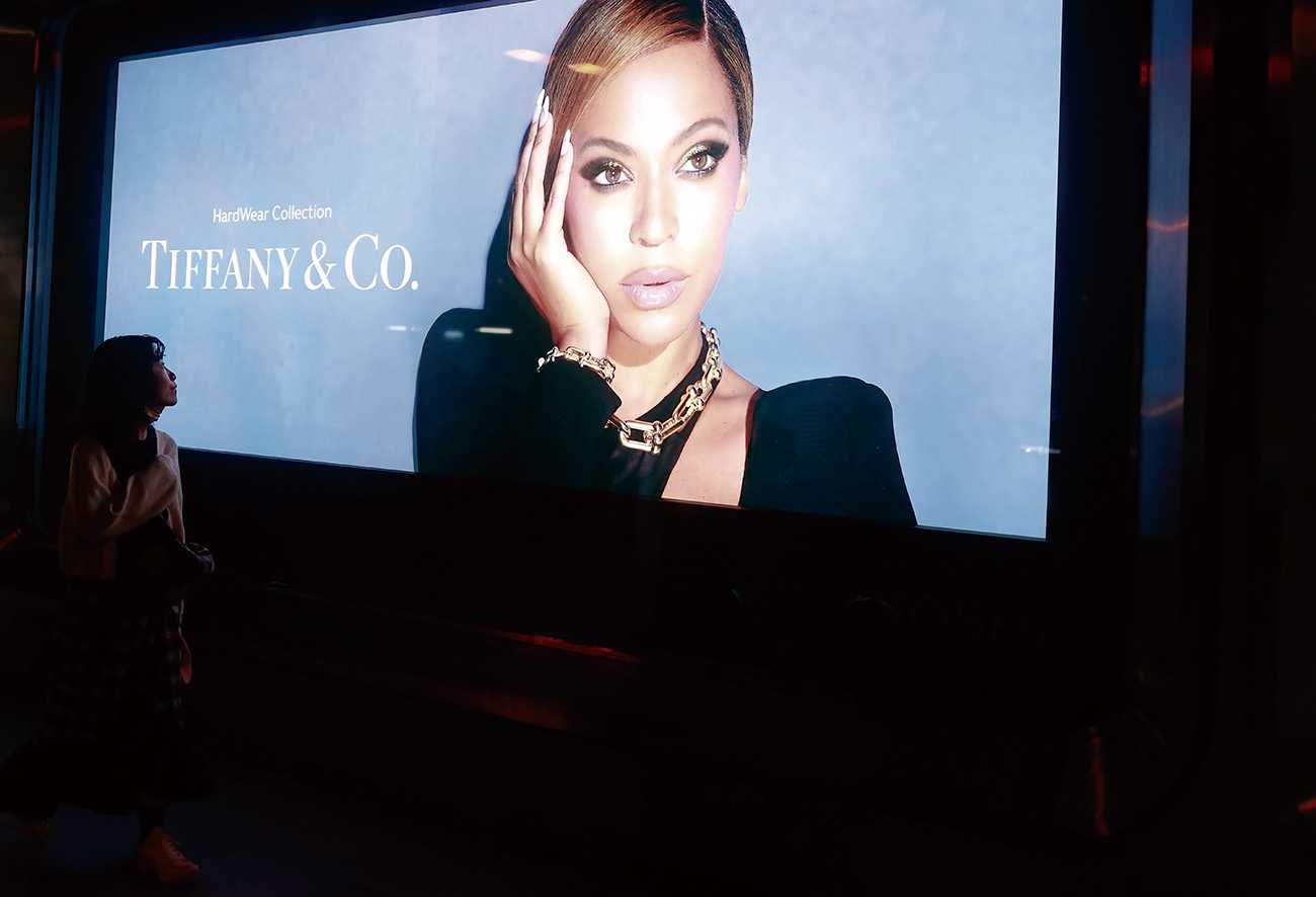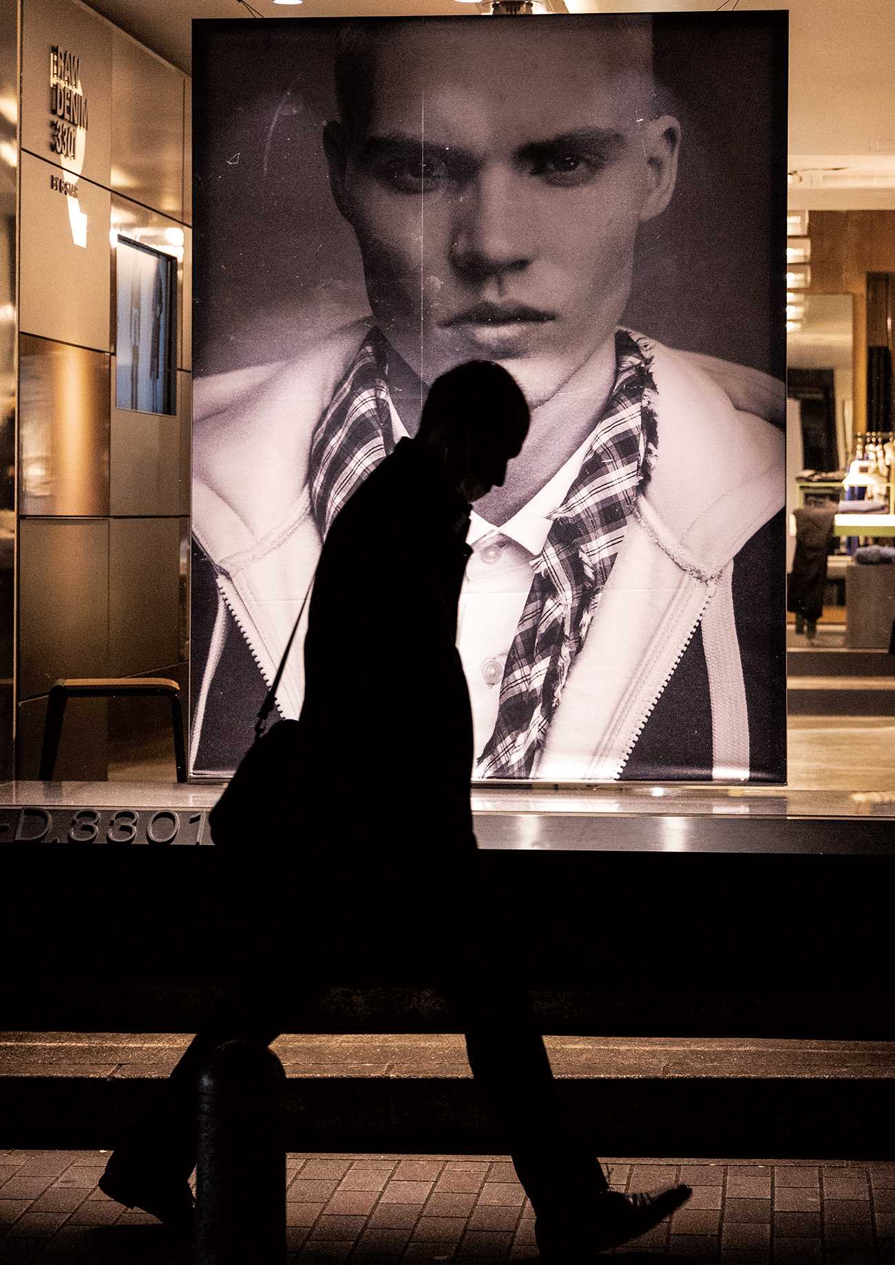 街中の広告と人。