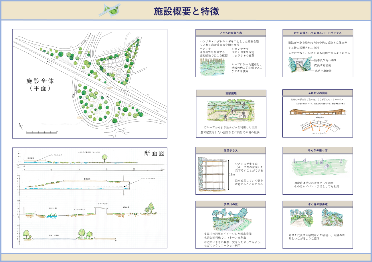 そこで、国立市の南部地域にある「中央自動車道国立府中ICループ」をモデルとして、近隣の自然とのつながり、人と自然とのつながりを含めたこれからのハイウエイ緑化の在り方を提案します。