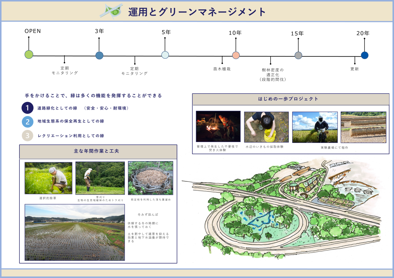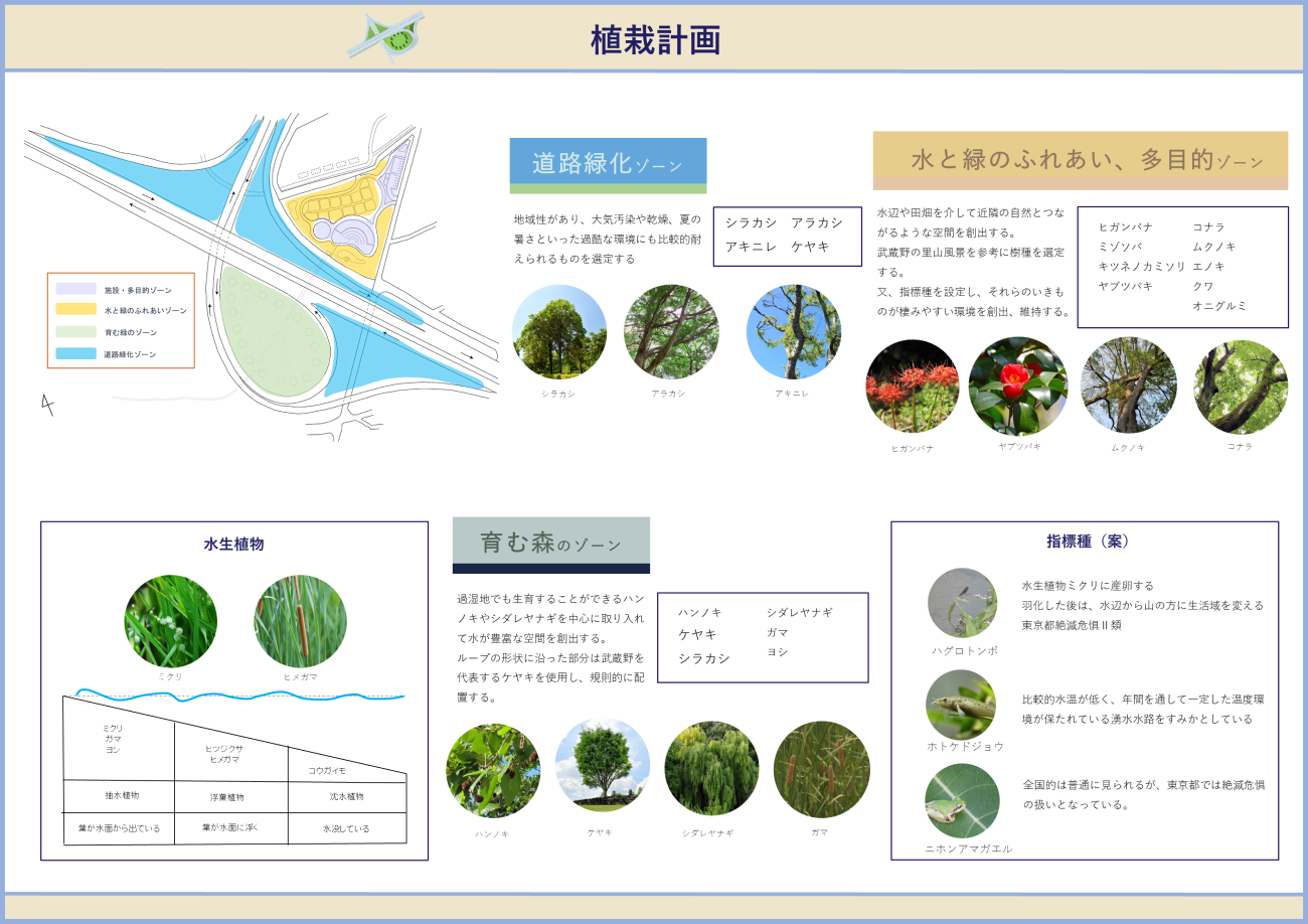 それは、ヒトの方から植物やいきものに影響を与えるだけでなく、植物やいきものからヒトに対しても影響を与える。それが時にはヒトにとって大きな気づきやひらめきを与えることにもなる。さらに、ヒトも生態系の一部であることを感じることができる、そのような場所を創出したいと思い卒業制作のテーマとしました。