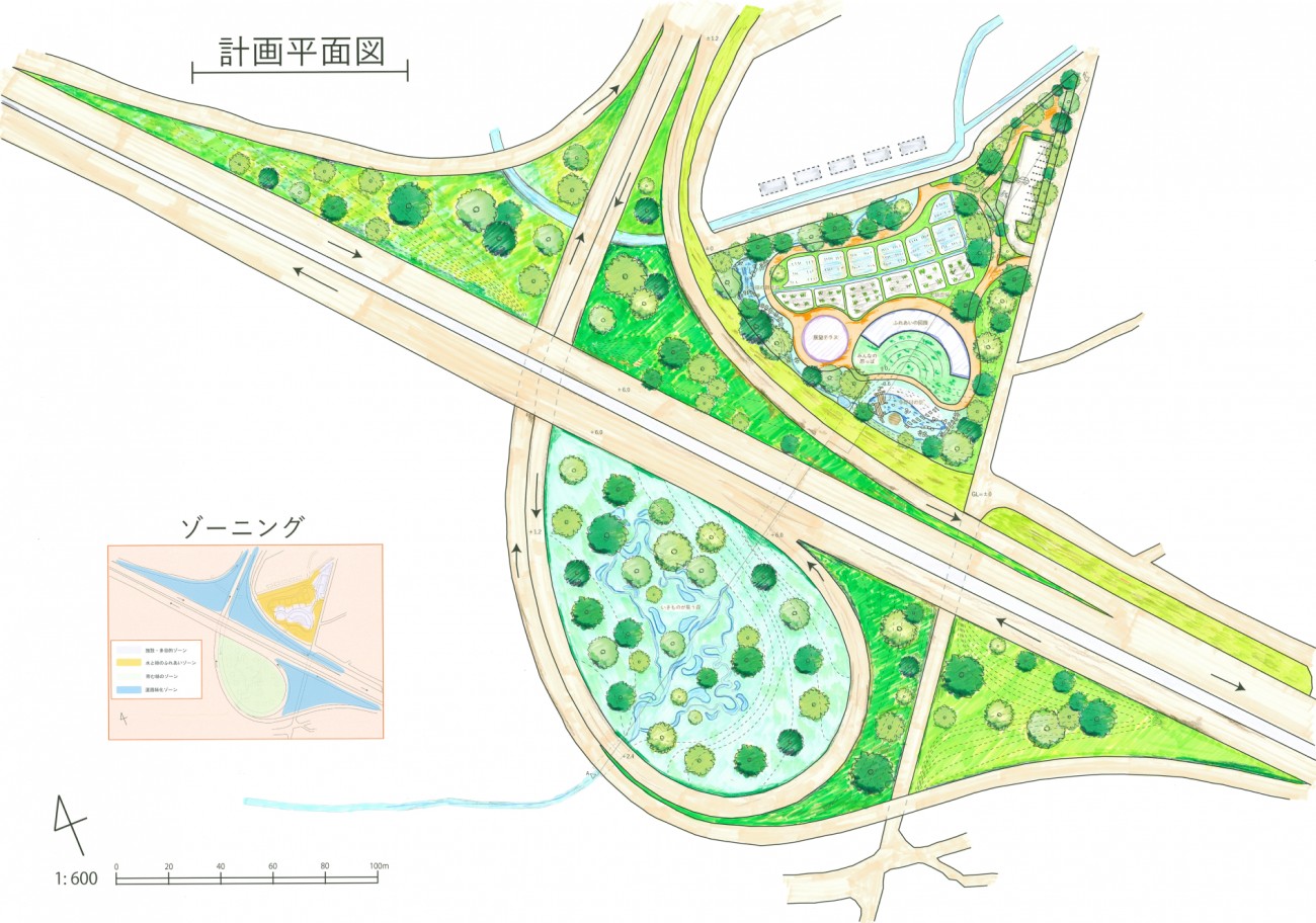 高速道路のICループは、「原則、人が立ち入ることはない」、「すり鉢状の起伏に富んだ地形」、「緑地帯として一定の面積が確保されている」などの特徴があり、貴重な緑地となるポテンシャルを秘めているのではないか?と考えました。