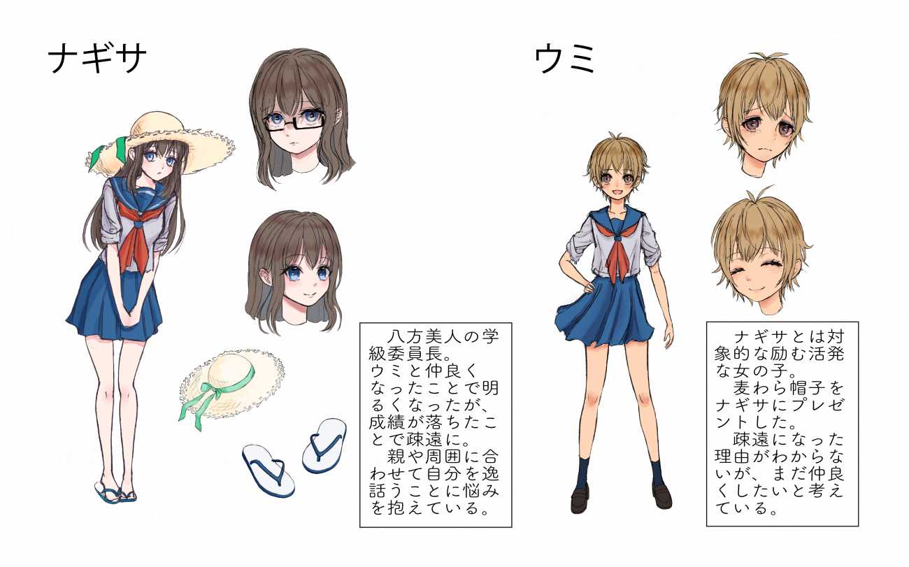 映像では、私が得意とする情景と少女イラストを活かし、青春を象徴する「夏」「海」「セーラー服」などを描きました。これらのモチーフは、みる人が自分の過去を重ね合わせ、懐かしさや温かさを感じられる構成になっています。 この 「ノスタルジック」の体験の効果には過去を振り返ることでその過去を美化して前向きな気持ちを促進する効果があるとされ、本作品ではその要素を最 大限活用してターゲットに癒しを届ける狙いがあります。