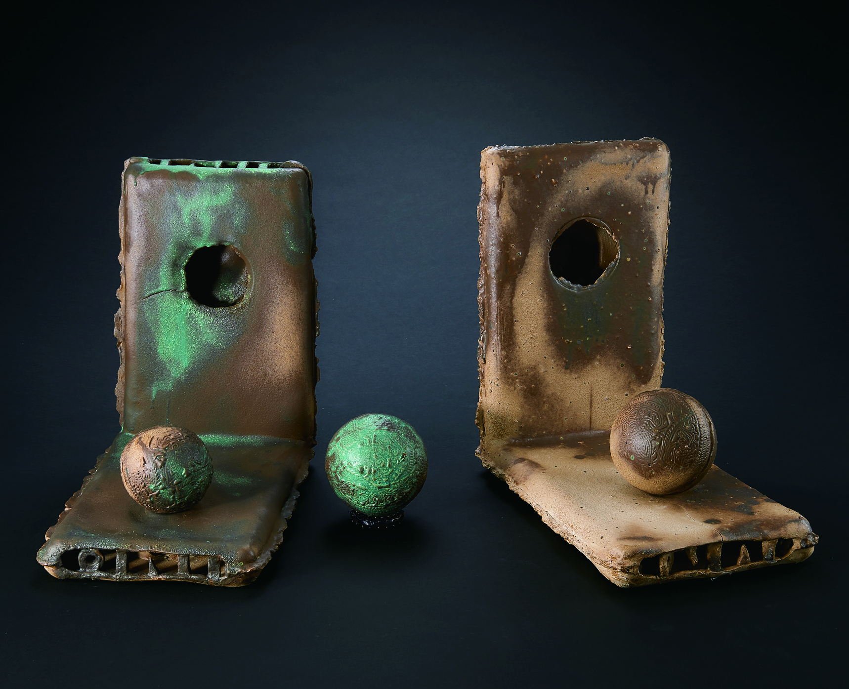 黒泥土・辰砂釉/タタラ/還元 焼成
