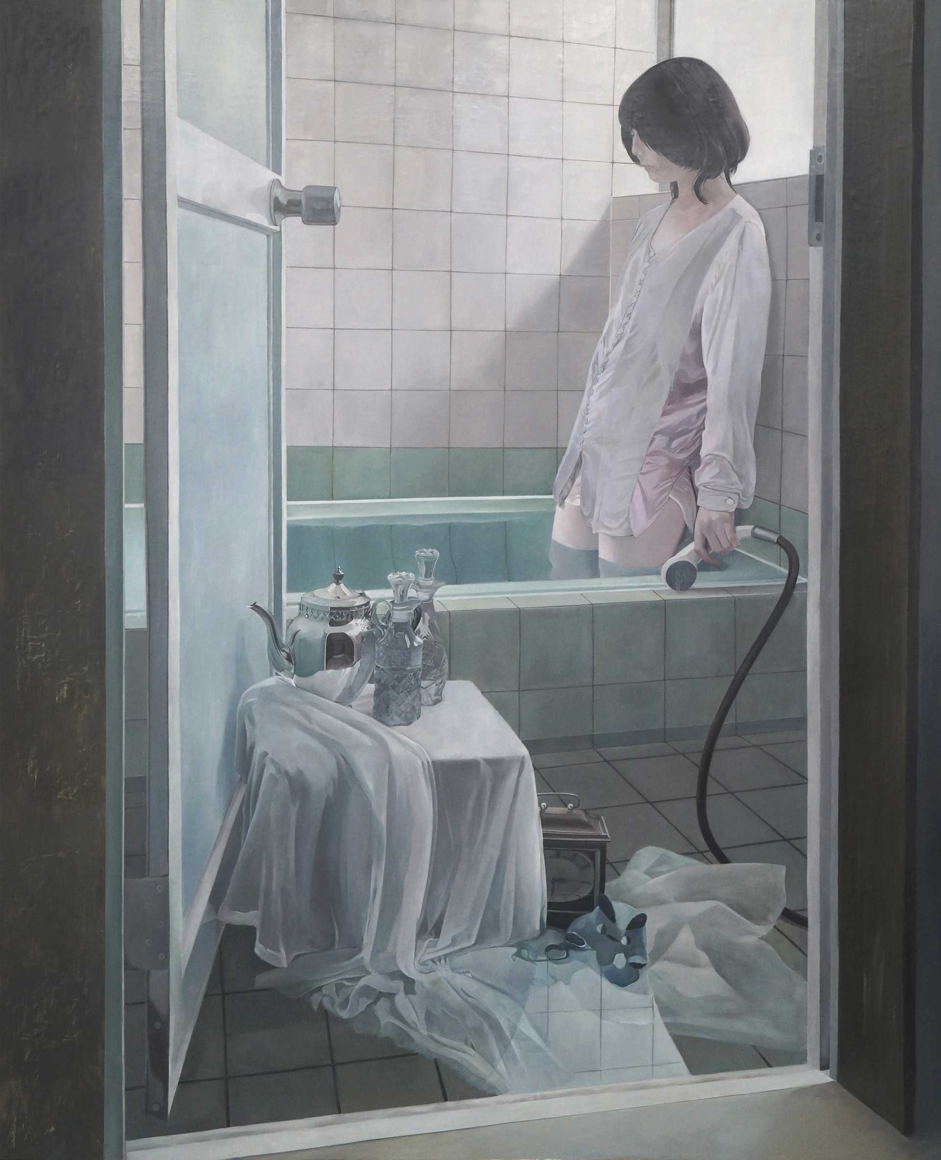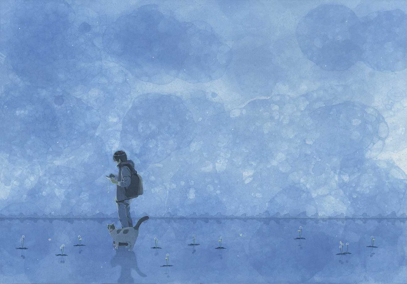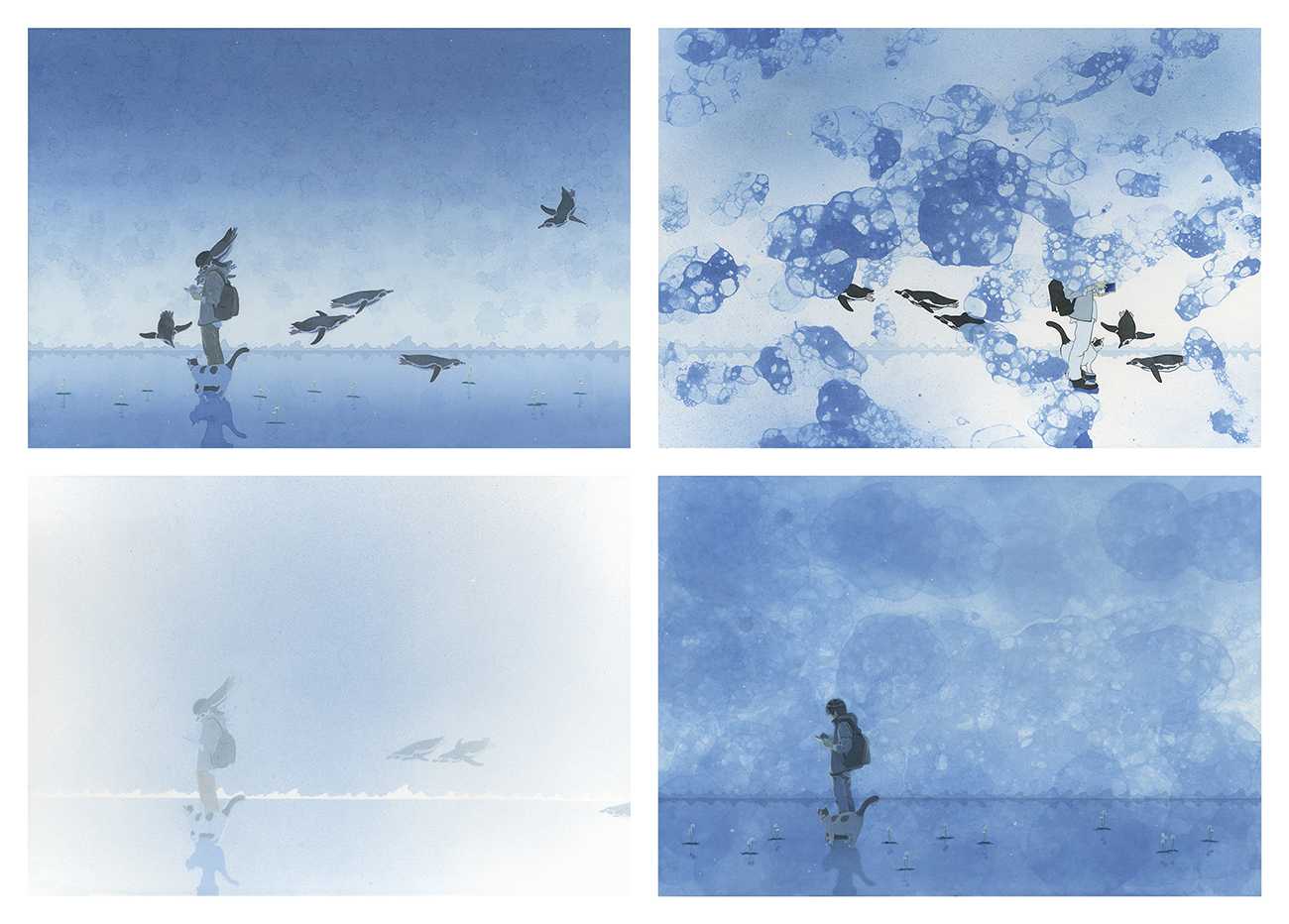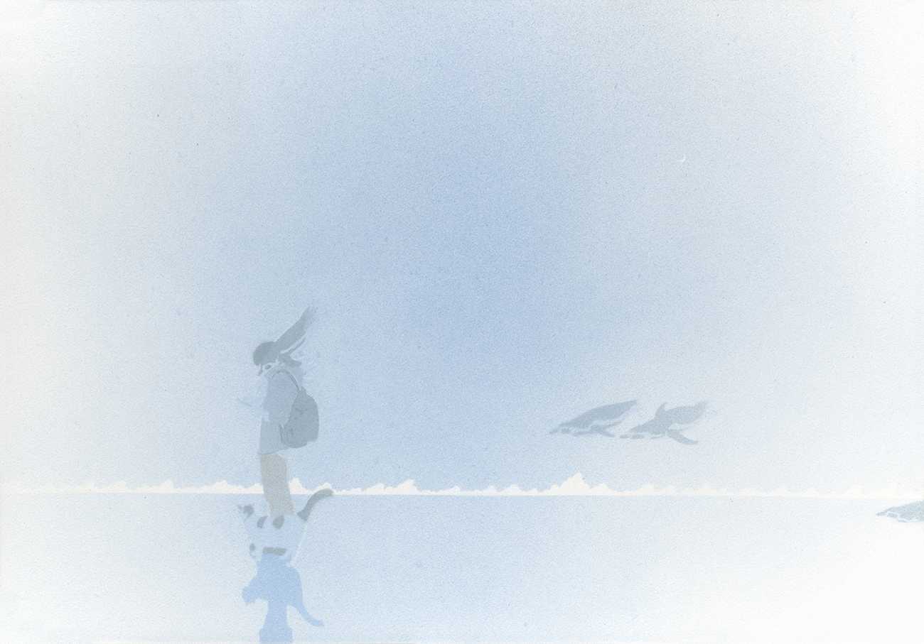水平線とモチーフ、青を共通項にしながら各作品で表現手法(しぶき・泡・霧)を変えて比較・制作に取り組みました。制作における取捨選択の整理と言語化を意識的におこなうことで、新たに試したい表現を見出すことができた作品です。