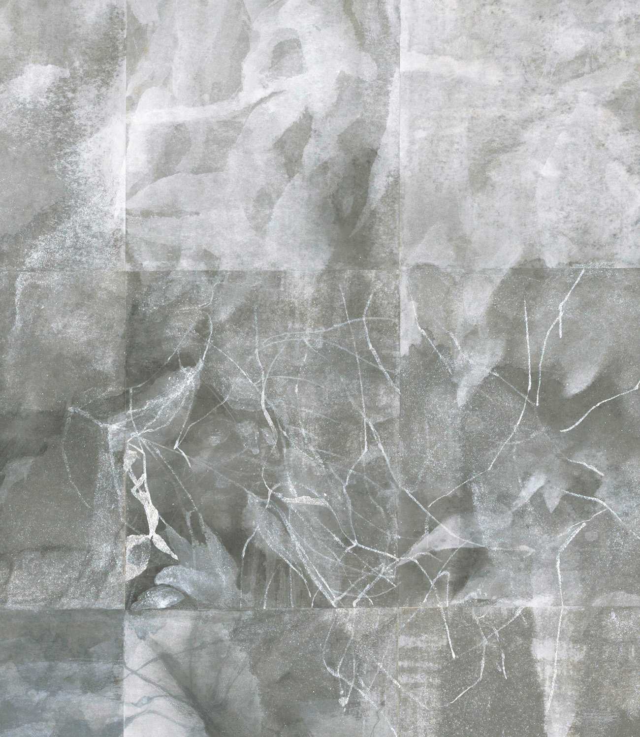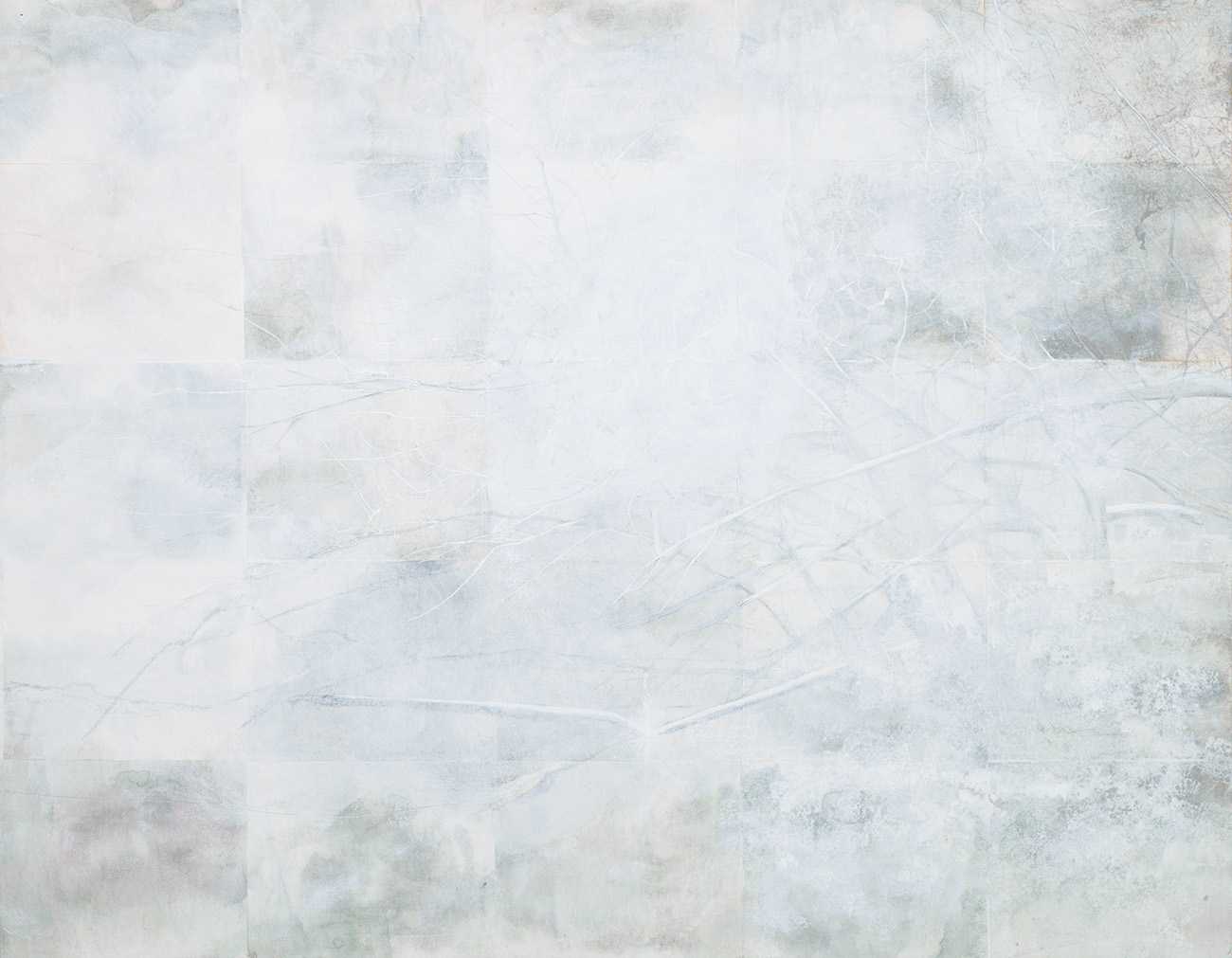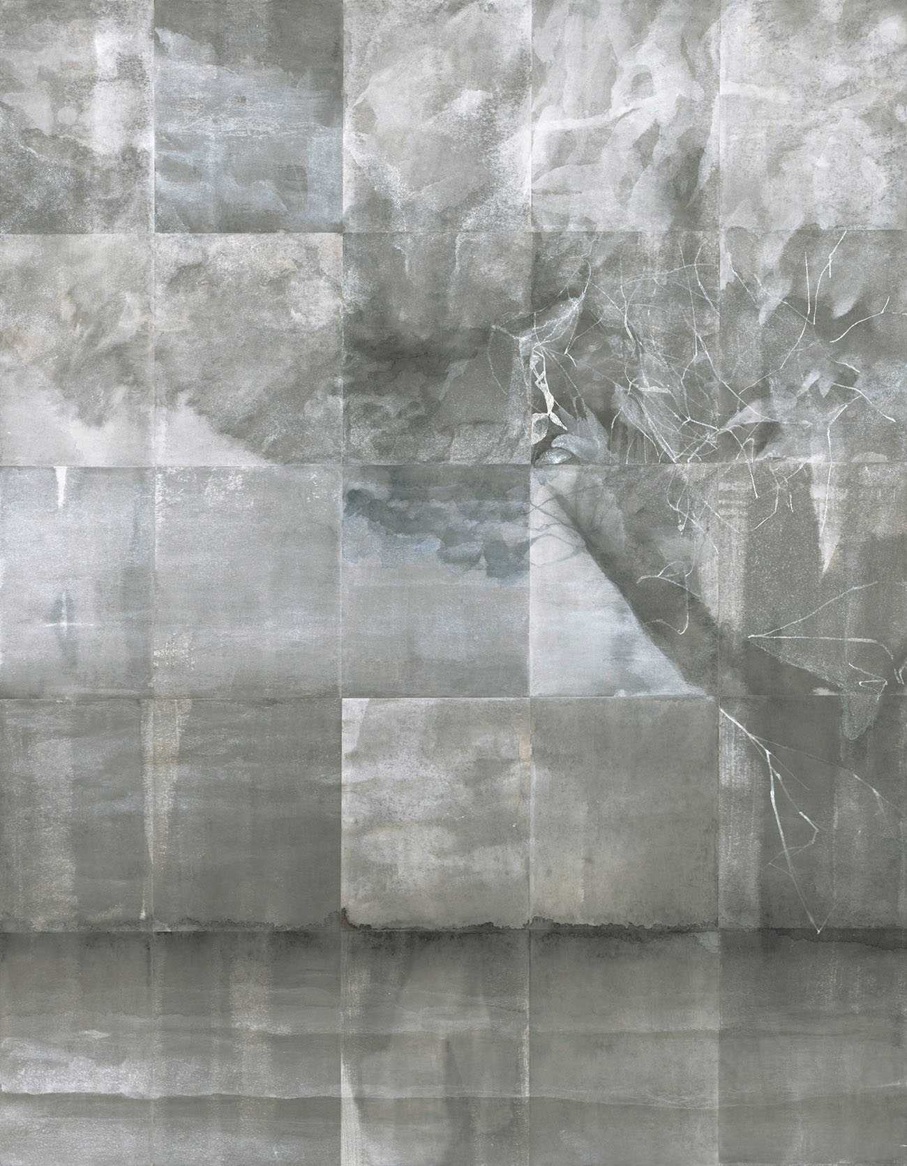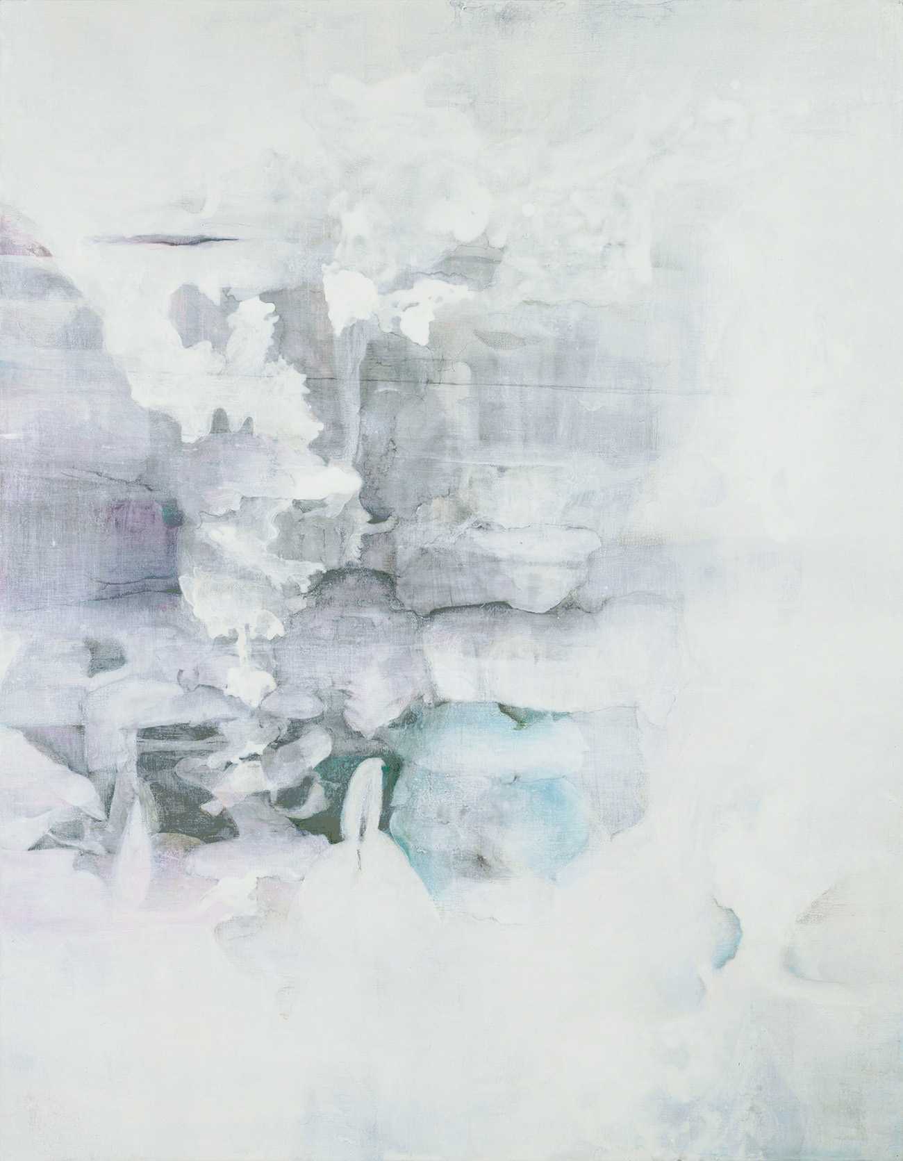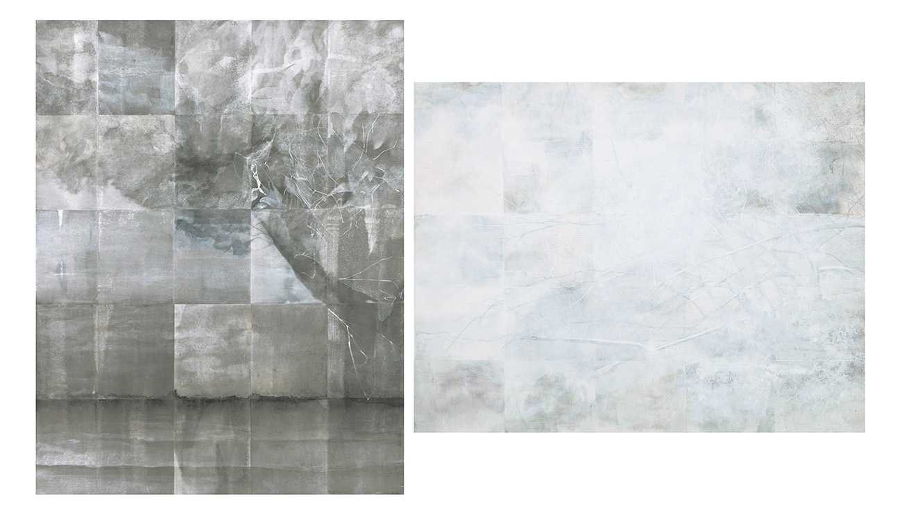 新麻紙/墨、炭酸カルシウム、胡粉、色鉛筆、銀粉、PVA