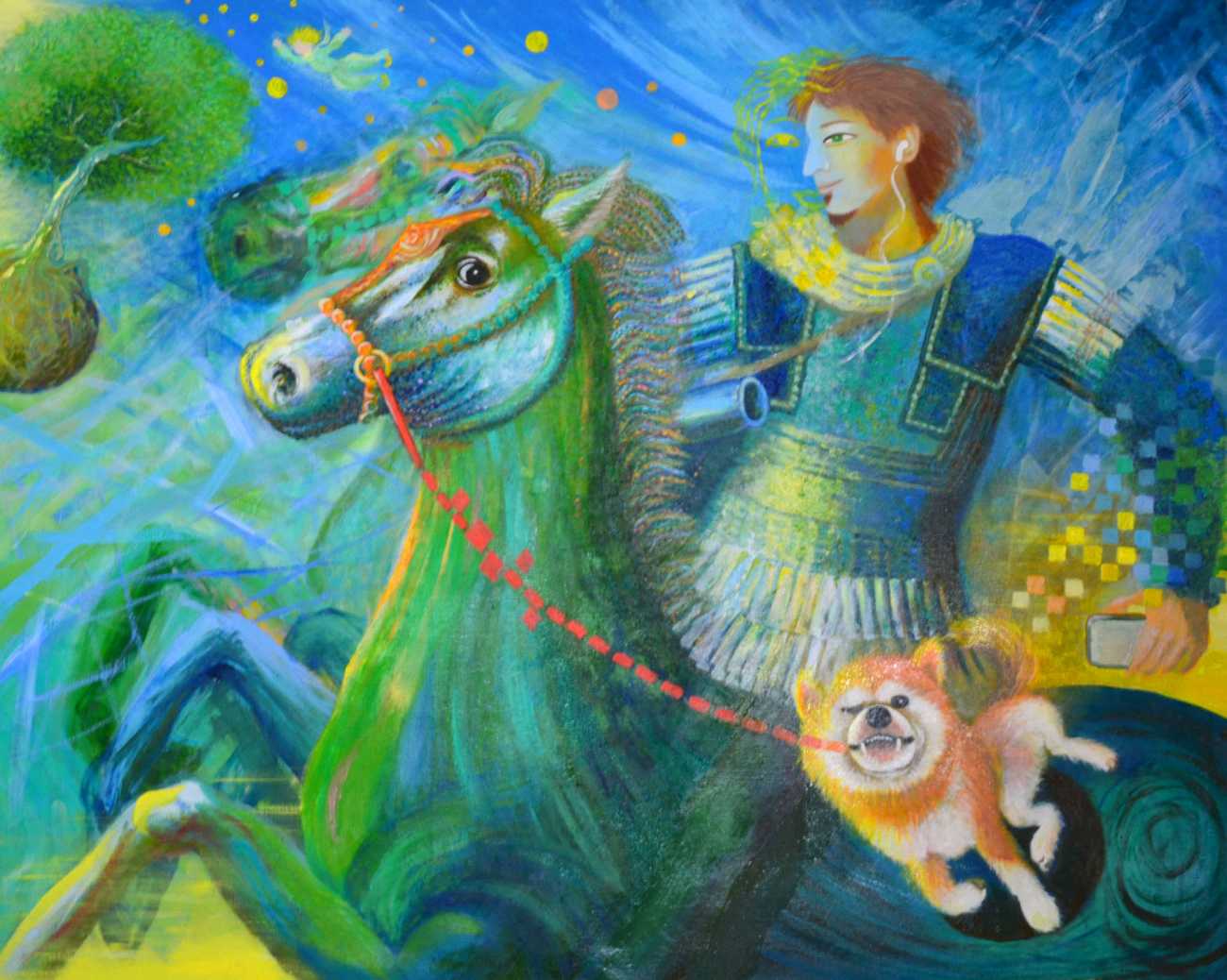 《アレキサンダーH.》はアレキサンダー大王の壁画のイメージからインスピレーションを受けて現代のIT世界の主人公を登場させた。絵の中に様々な童話、物語、小説のイメージを入れて「読み解く絵画」「物語世界」へ誘いたい。