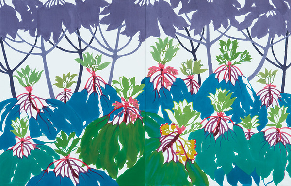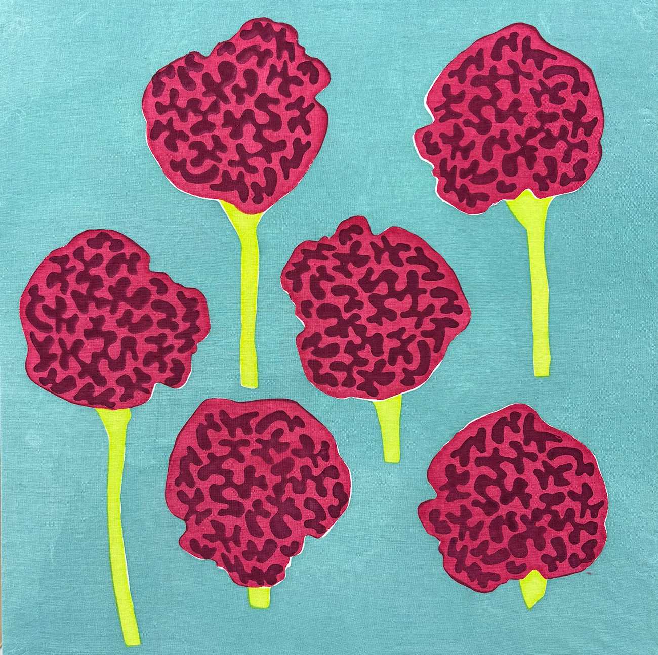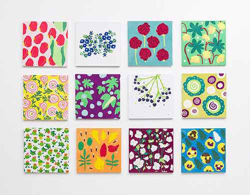 植物が好きで花屋で働きながら日々様々な植物を目にし、模様にしたい衝動に駆られます。12ヶ月分のカレンダーの代わりに、その時期の植物を具象的に12枚のファブリックパネルにしました。