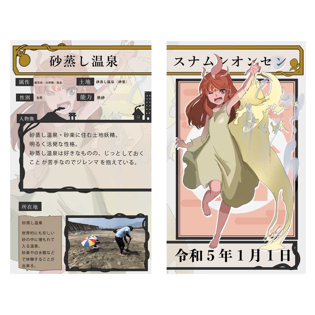 砂蒸し温泉の図鑑ページイメージです。