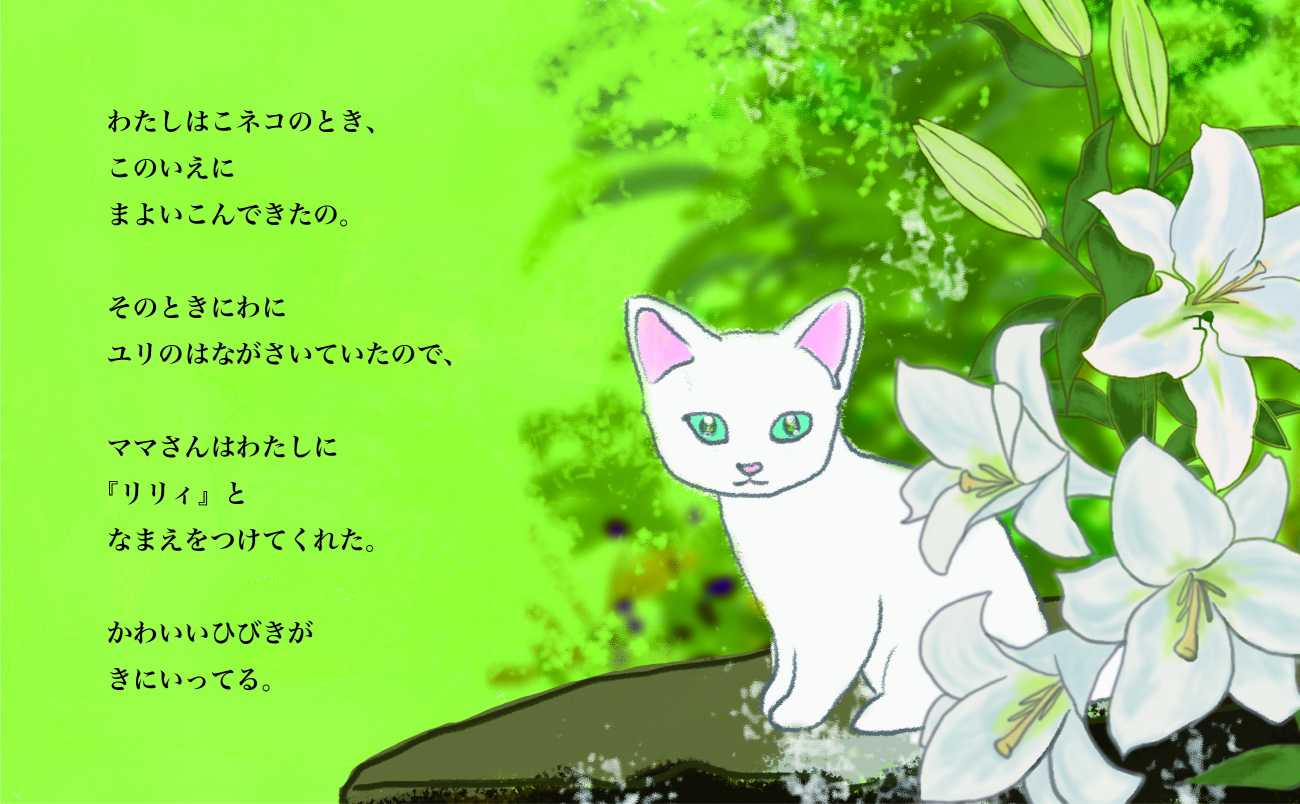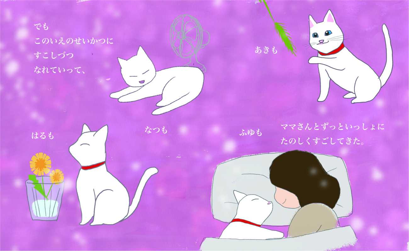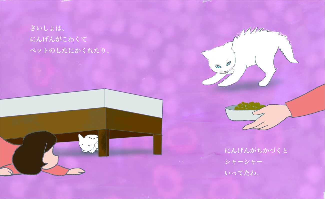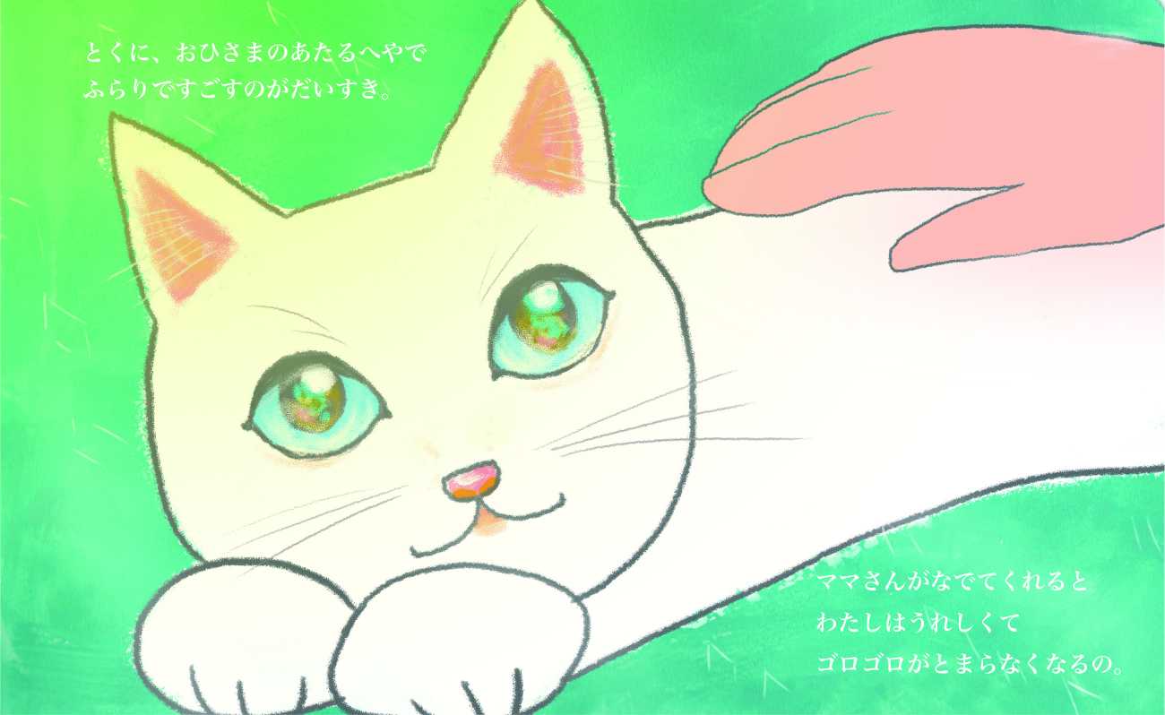 なので、いつかペットの飼い主になる子どもたちに、犬や猫との触れあいの中で育まれる思いやりを伝え、「命の尊さや動物愛護の心」を、絵本を通じて、体得してもらえたらと思った。