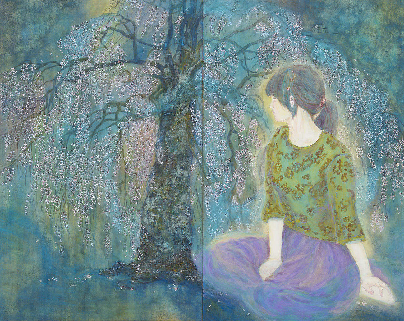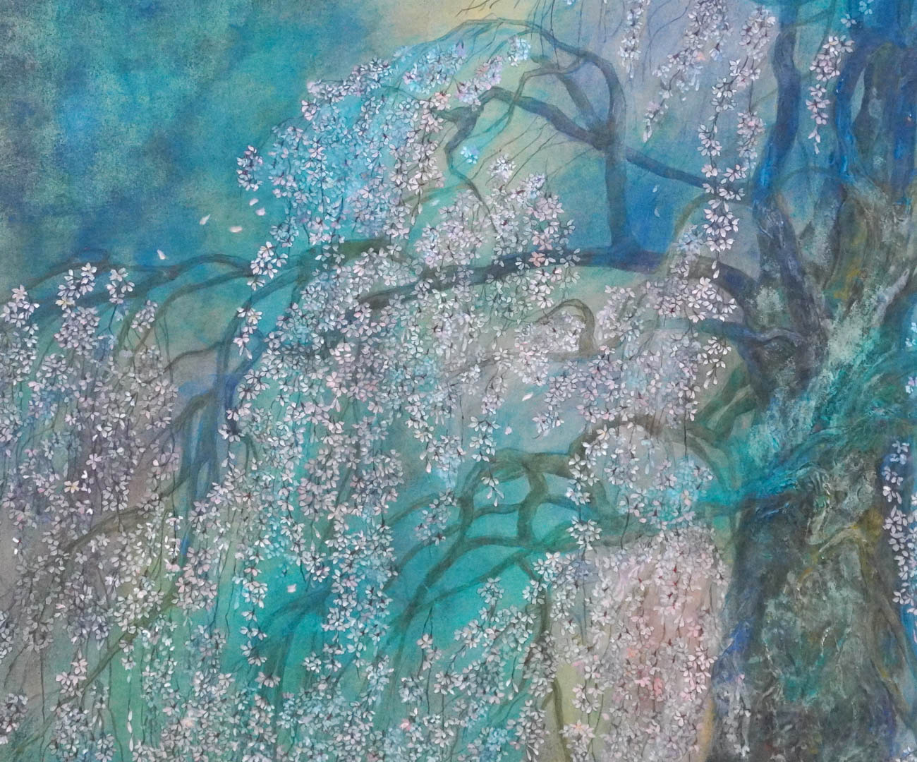 桜にまつわる多くの思い出の中でも、「満開の桜を観ながら、死者を悼む想い」を描いてみた。