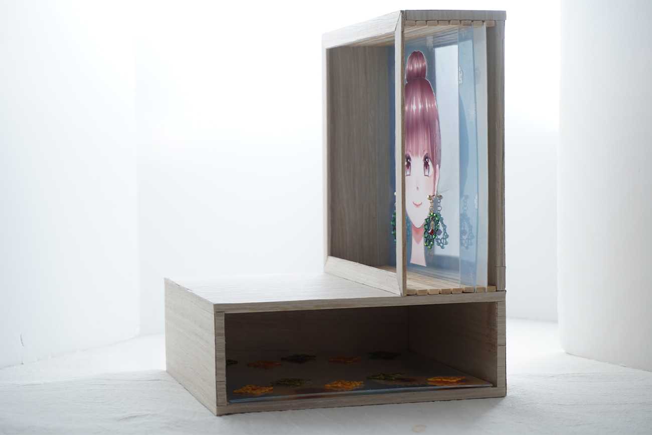 また、中のレイヤーには自身で編んだ水引やタティングレースといった「糸」を使って「温もり」を表現しています。