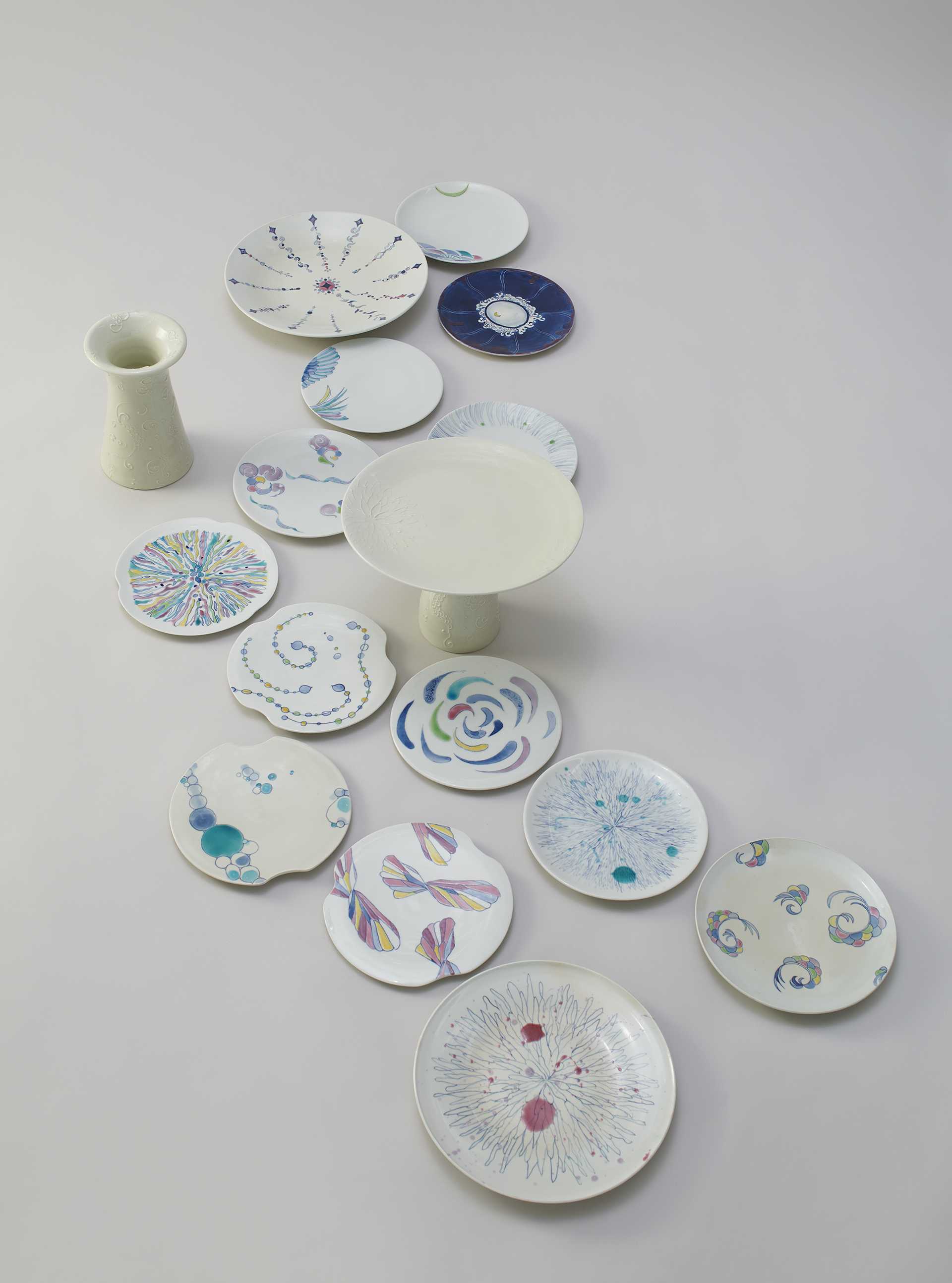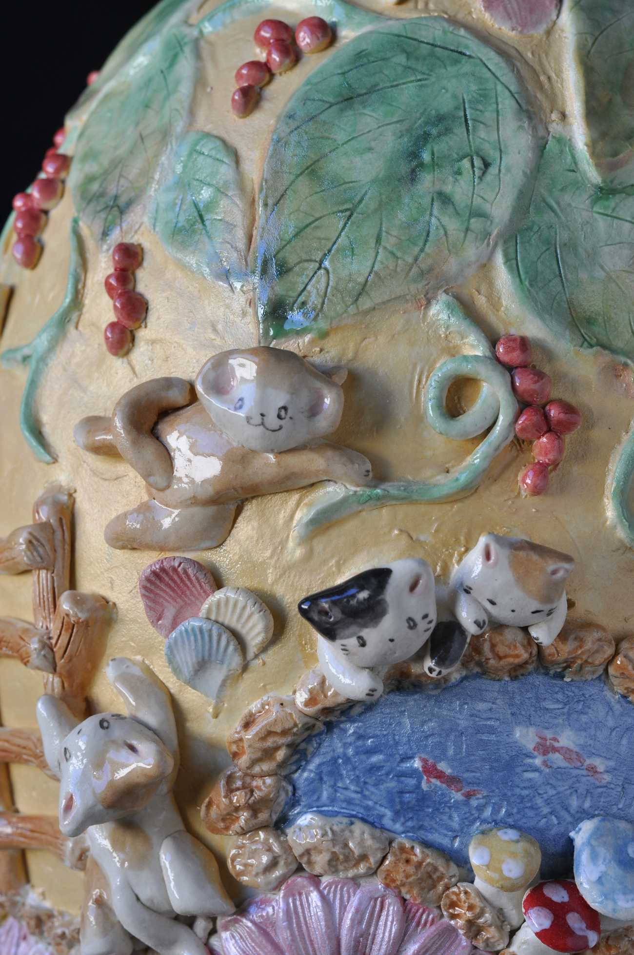 白土/石灰系釉薬、他/酸化, 上絵/手びねり、ろくろ、タタラ、型