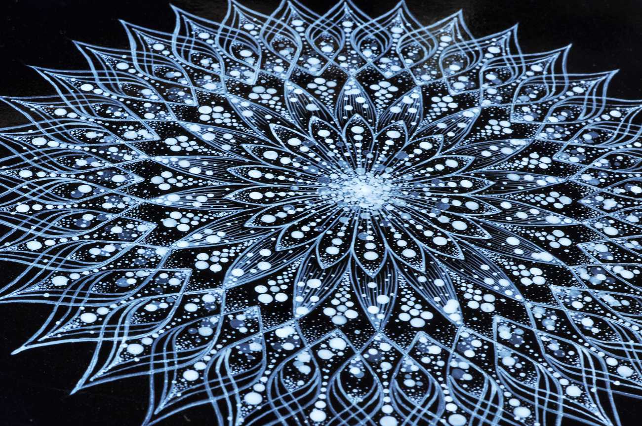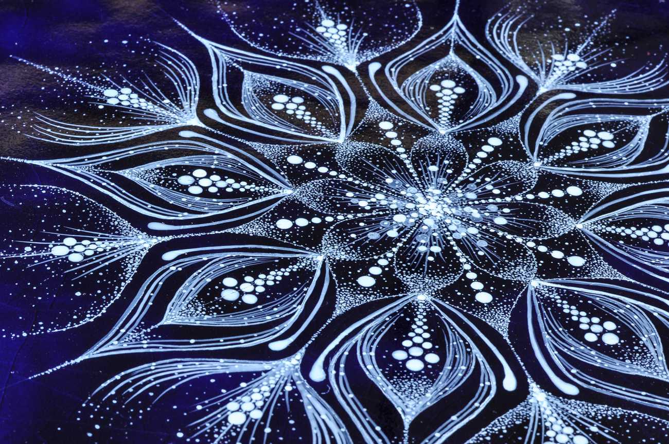 誰もがもっている愛と光…そしてその美しさを宇宙空間をイメージした背景の上に曼荼羅アートの要素を取り入れて描写。内に育んだ愛と光が溢れだし外へとそして宇宙空間へと拡散する様子を表現した。