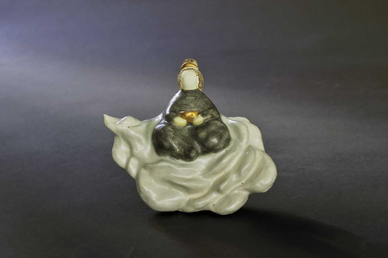 薄れる意識の中で迎えにきてくれる天人たちは、夢と現実の狭間のようにぼんやりとしているだろうと想像し、表情までは作り込まず作品全体も曖昧さを残しています。一目見て心穏やかになる作品を目指しました。