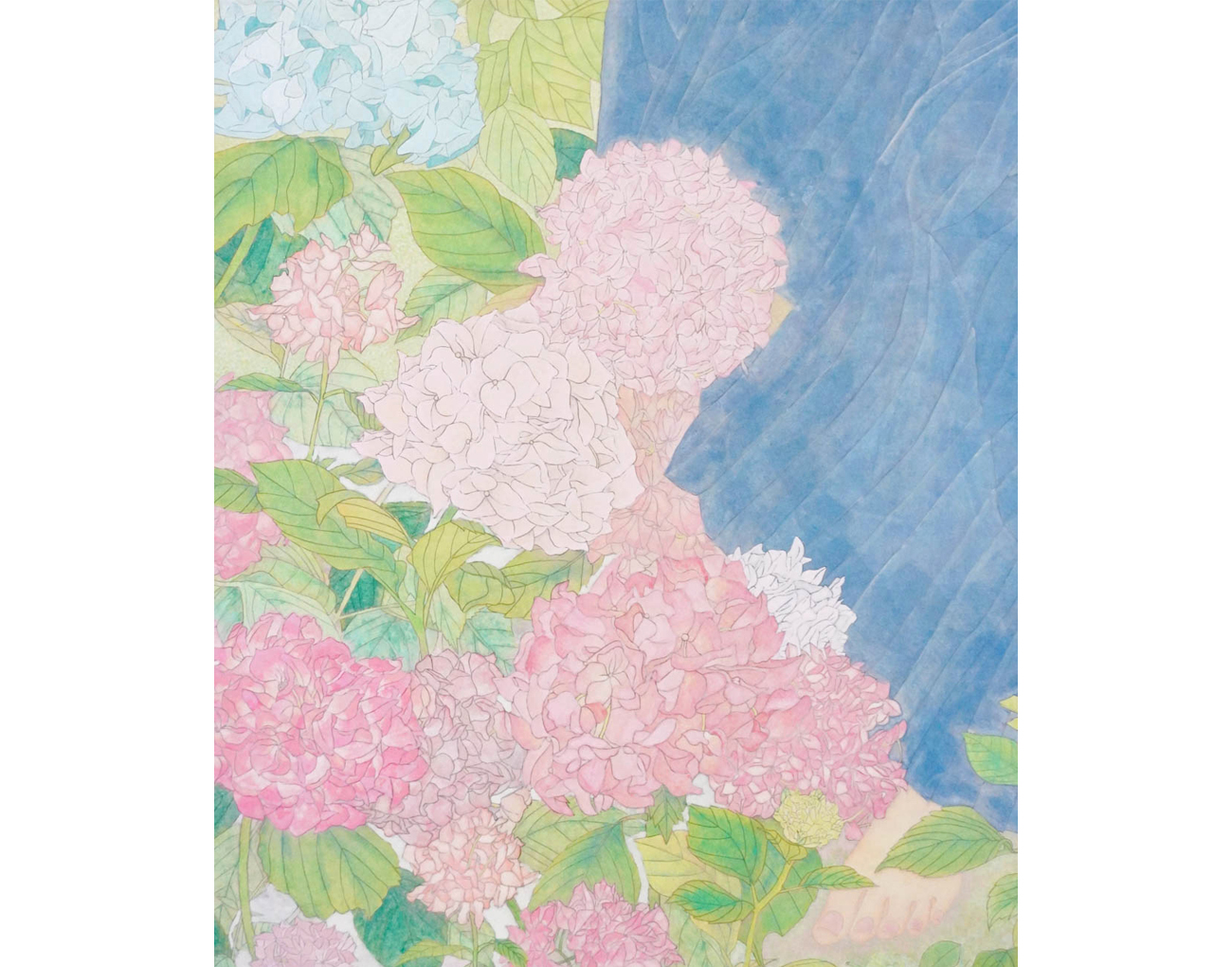 地元の公園に紫陽花の散歩道があります。道の両脇に多種多彩に咲いている華やかな姿と、春前に見た立ち枯れの姿も魅力的でした。しかし枯れかかった時期にすべて剪定されてしまいました。紫陽花の気持ちも聞けたらと制作しました。