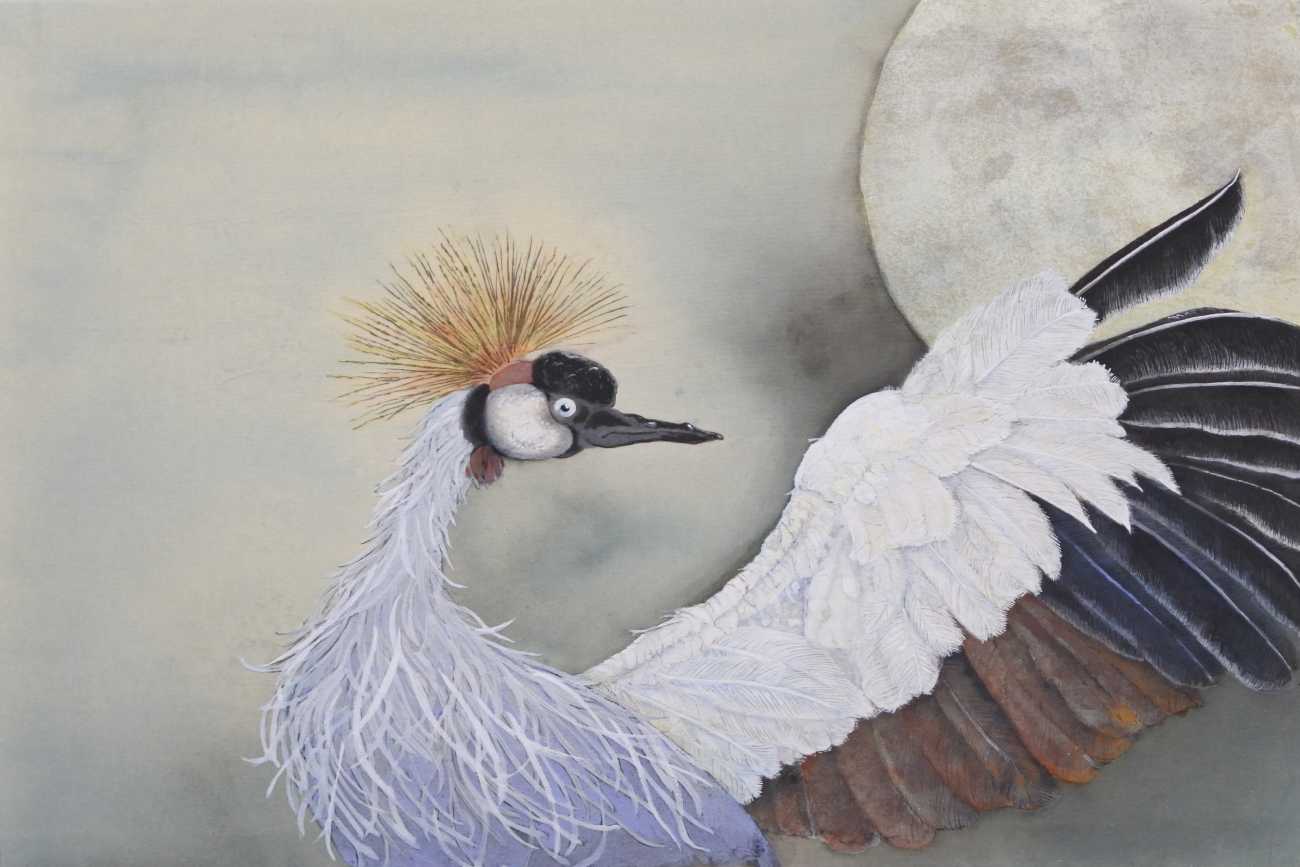 故郷の月を想うカンムリツル