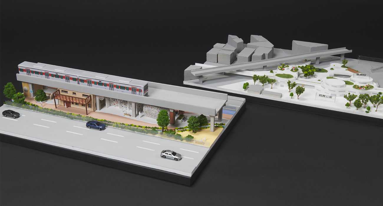 模型写真(左)1/100 高架下 (右)1/500 鶴舞駅
