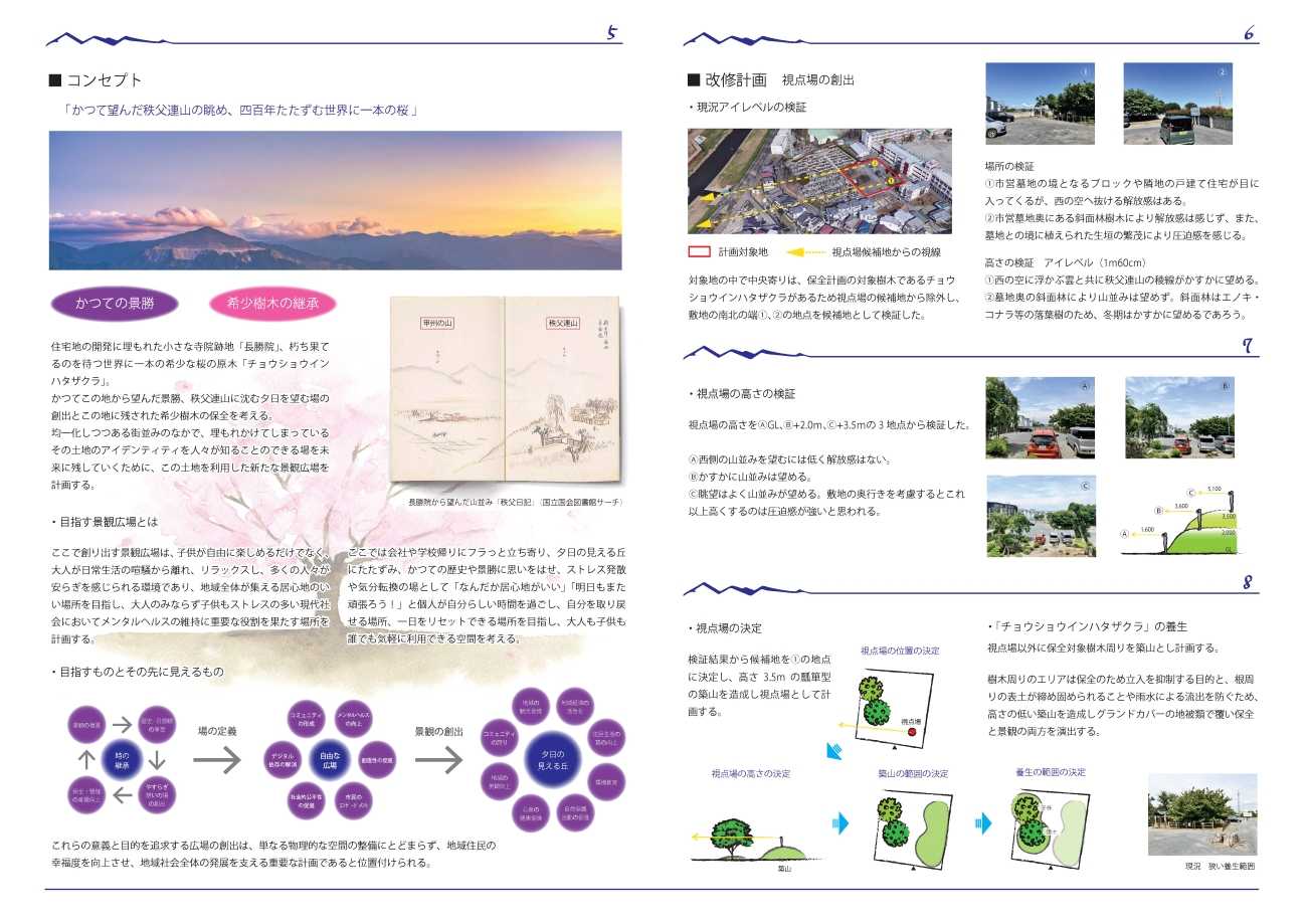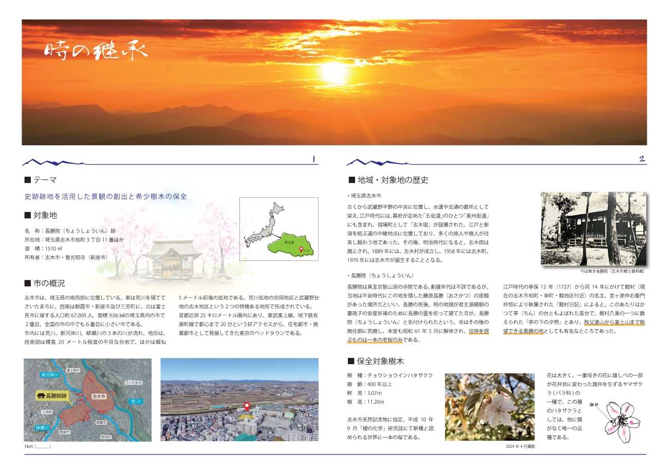 「時の継承」というテーマのもと、埼玉県志木市の長勝院跡地の活用と、世界で唯一とされる希少な桜「チョウショウインハタザクラ」の保全について考えました。