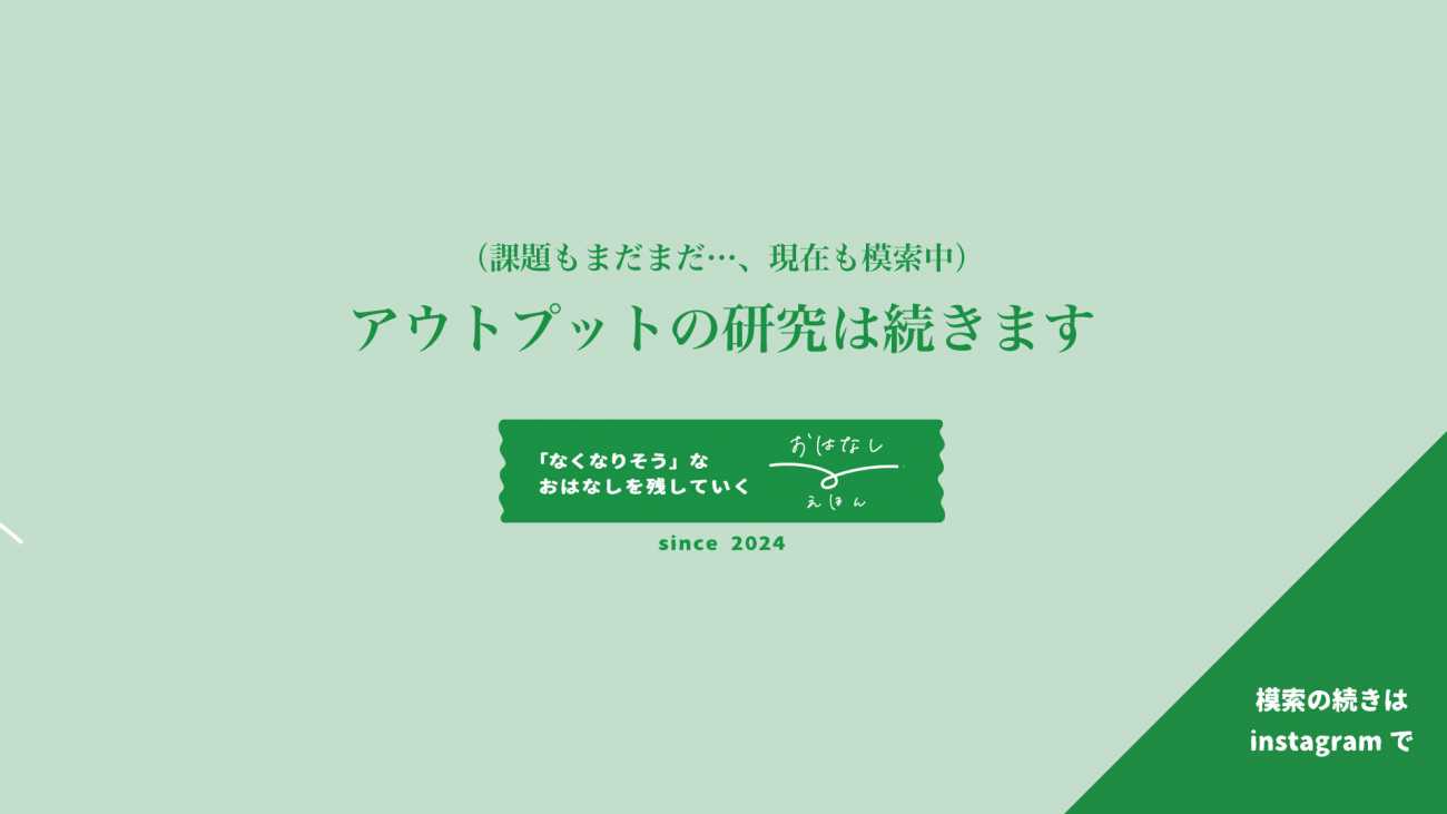 語り手である戦争体験者の「せんそう」のあたりまえが、一人一人違うのと同じく、読み手(受け手)のあたりまえもそれぞれに違います。よって、触れづらくかけ離れている「せんそう」のおはなしが、現代の身近な何か(=あたりまえ)にフィットしていく模索と、時代にあわせたアウトプット方法の研究はまだまだブラッシュアップが必要です。そのため、研究の続きはinstagramで継続していこうと思います。 模索や研究の続きをあたたかい目でご覧いただけるとうれしいです。