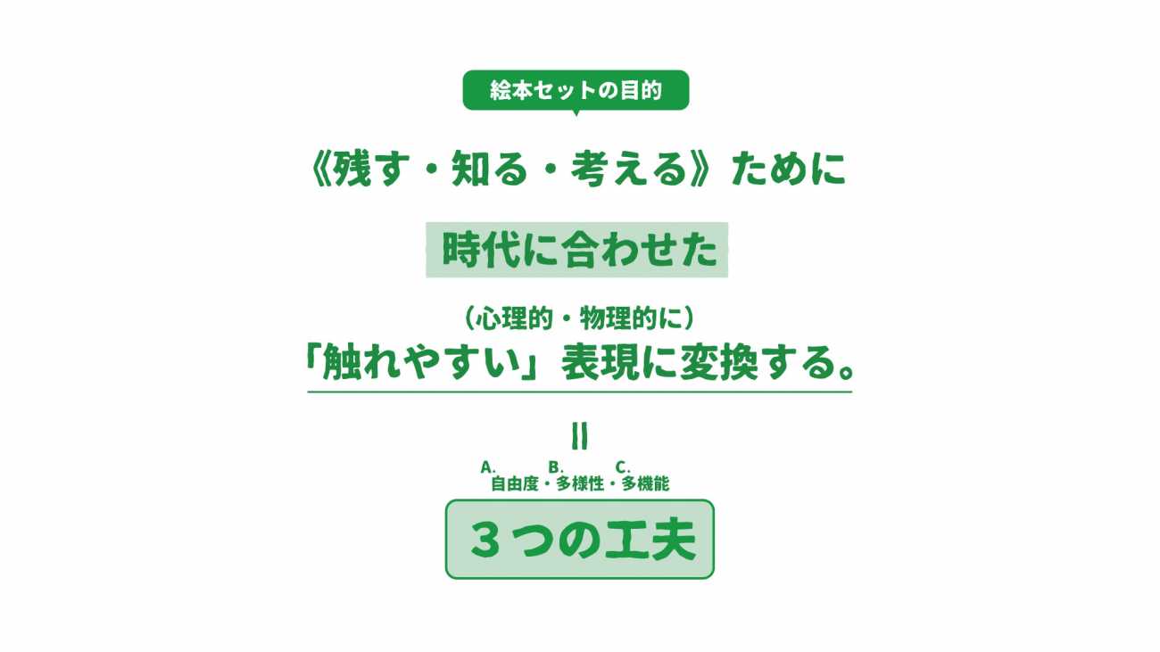 絵本を通じて豊かさと価値の本質を知り、いまの時代に合った方法で「なくなりそうな」おはなしを残します。