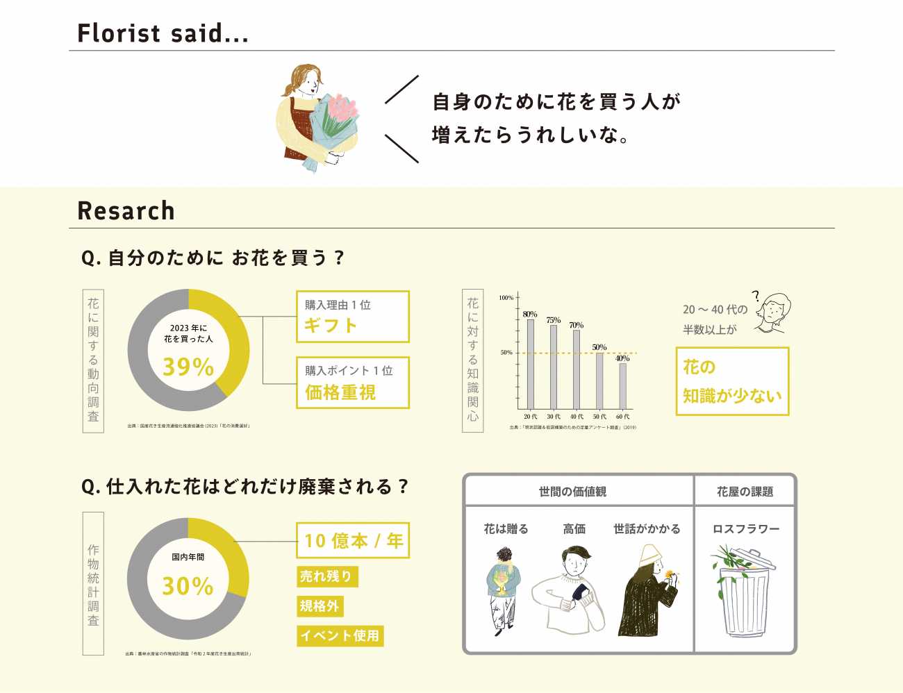 平安時代から花を愛で、江戸時代には花文化が世界で最も栄えたといわれる日本。「自分のために花を買う人が増えたらうれしい」そんな花屋さんの言葉をきっかけに、人と花をつなぐ新しい花との関わり方を提案します。