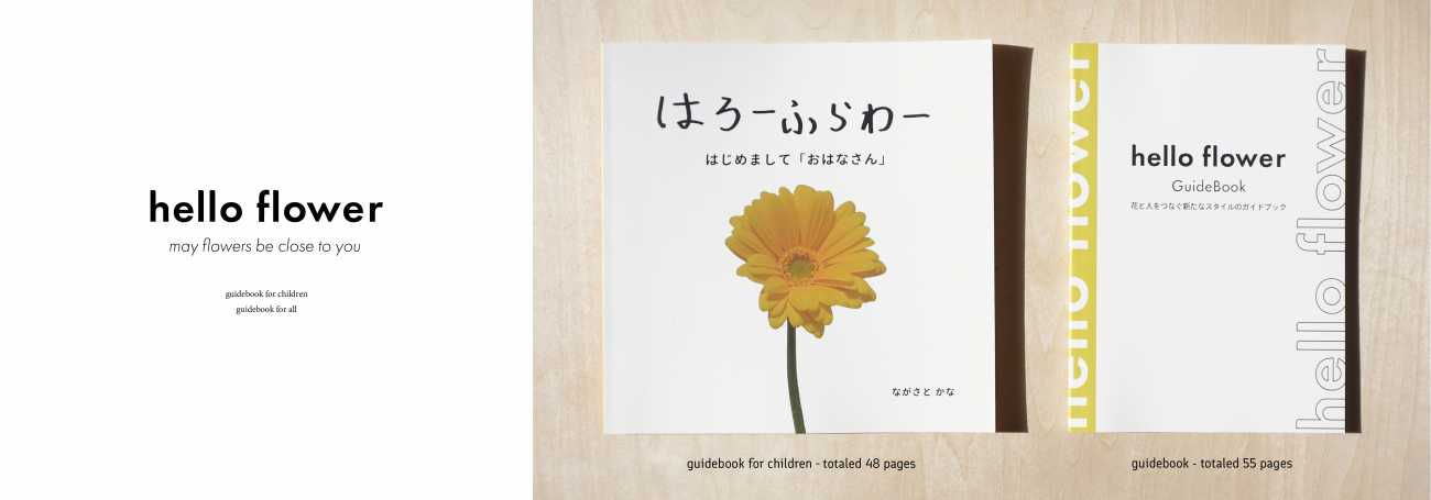 花との新しいかかわり方を提案するハローフラワーのガイドブックとして、全体用、こども用の2種類を制作。こども用ガイドブックにはワークシートがあり、本をみながら花と遊んでいただけます。ぜひハローフラワーキットバッグとともにお楽しみください。みなさまにとって、花が身近になりますように。