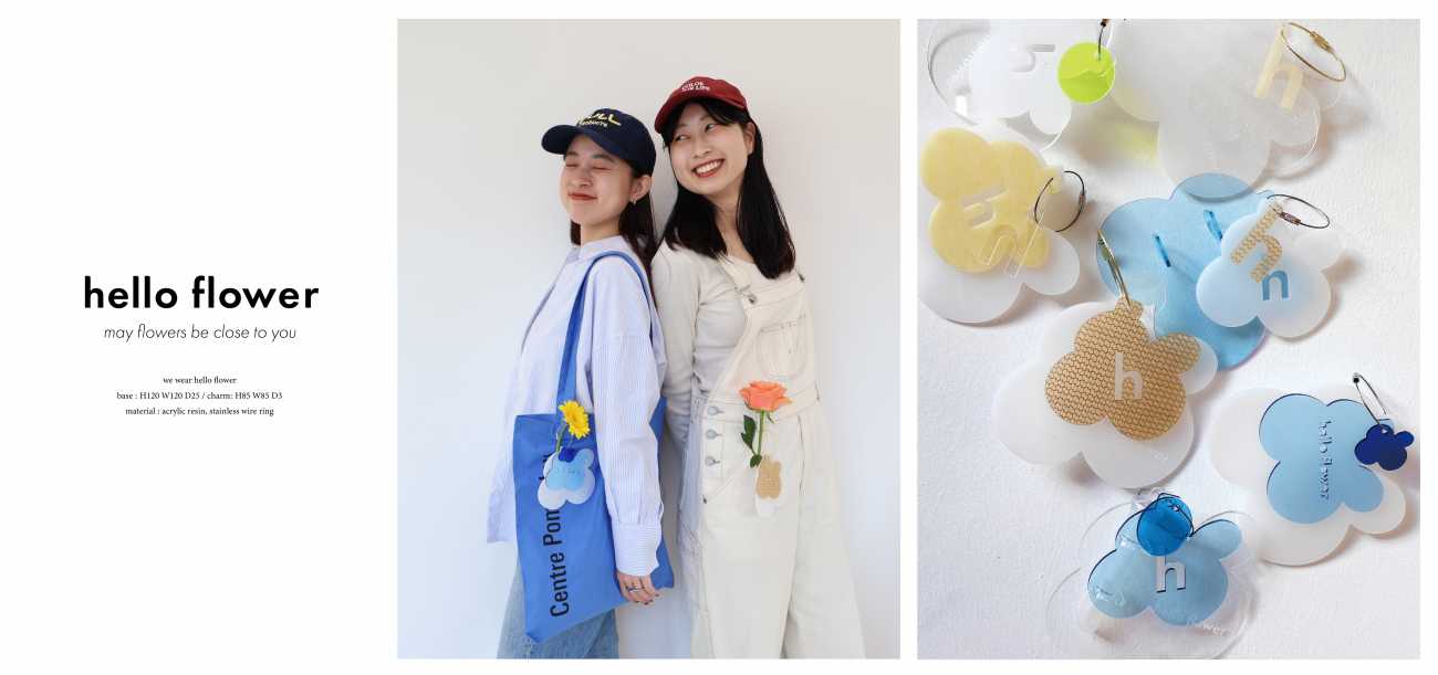 花を選ぶように、キーホルダーも選ぶ。アクリル製のキーホルダーは、素材の透明感が自然な花色を邪魔しません。また、花屋の新しいラッピングとしても活用できます。キーホルダーのカタチはハローの当て字[86]の輪郭から花のカタチへとデザイン。チャームは、お花、マル、ロゴ頭のhを組み合わせます。花をあわせるように、お気に入りのキーホルダーを作ってみてください。