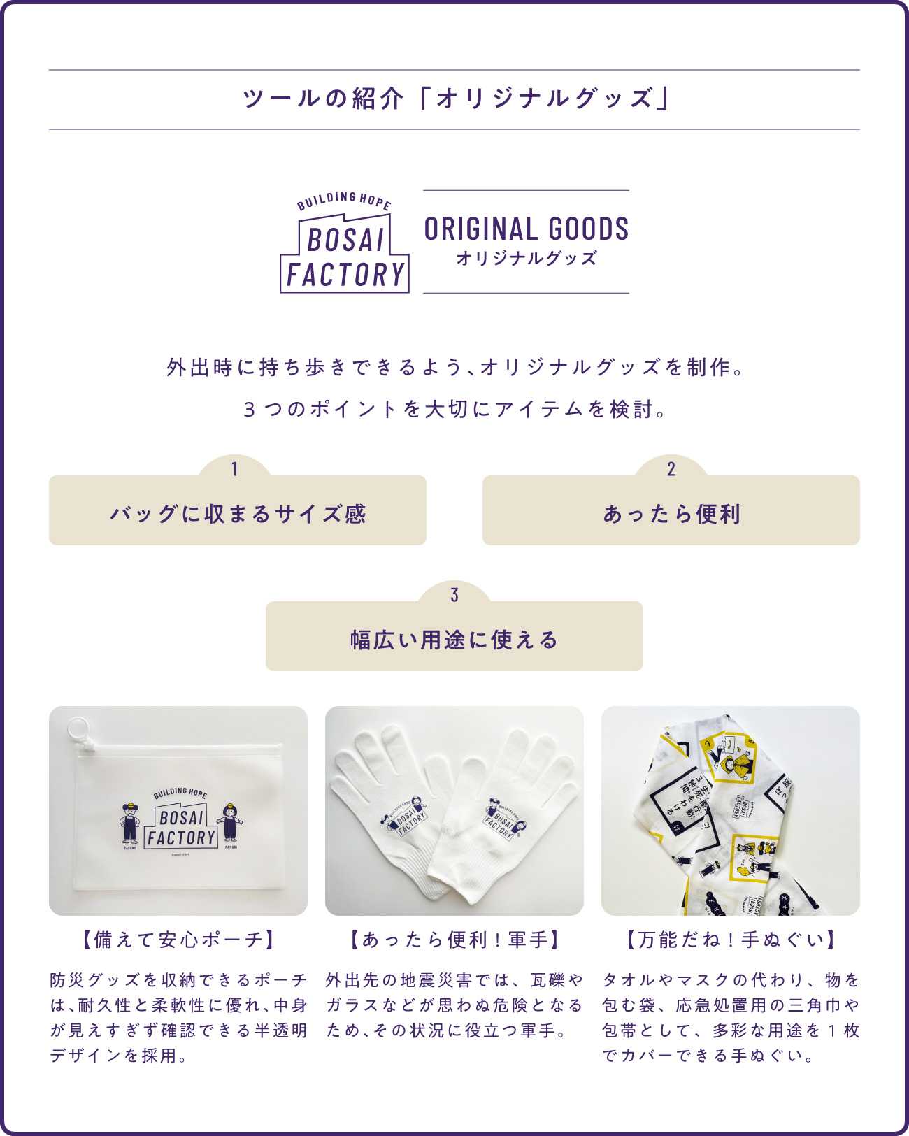 『BOSAI FACTORY』。</center>