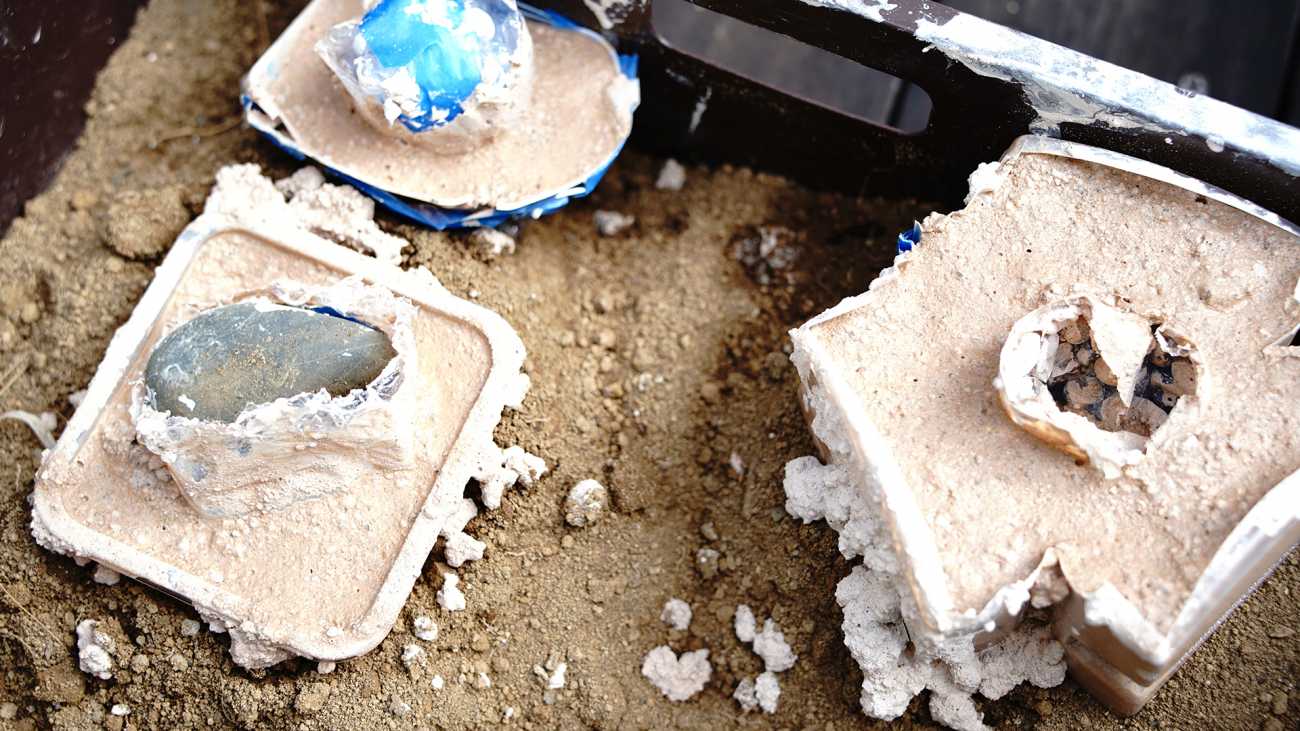 作品の強度を高めるとともに環境配慮されたモノづくりとするため、混ぜ合わせる素材や配合、圧力の掛け方を実験してきました。