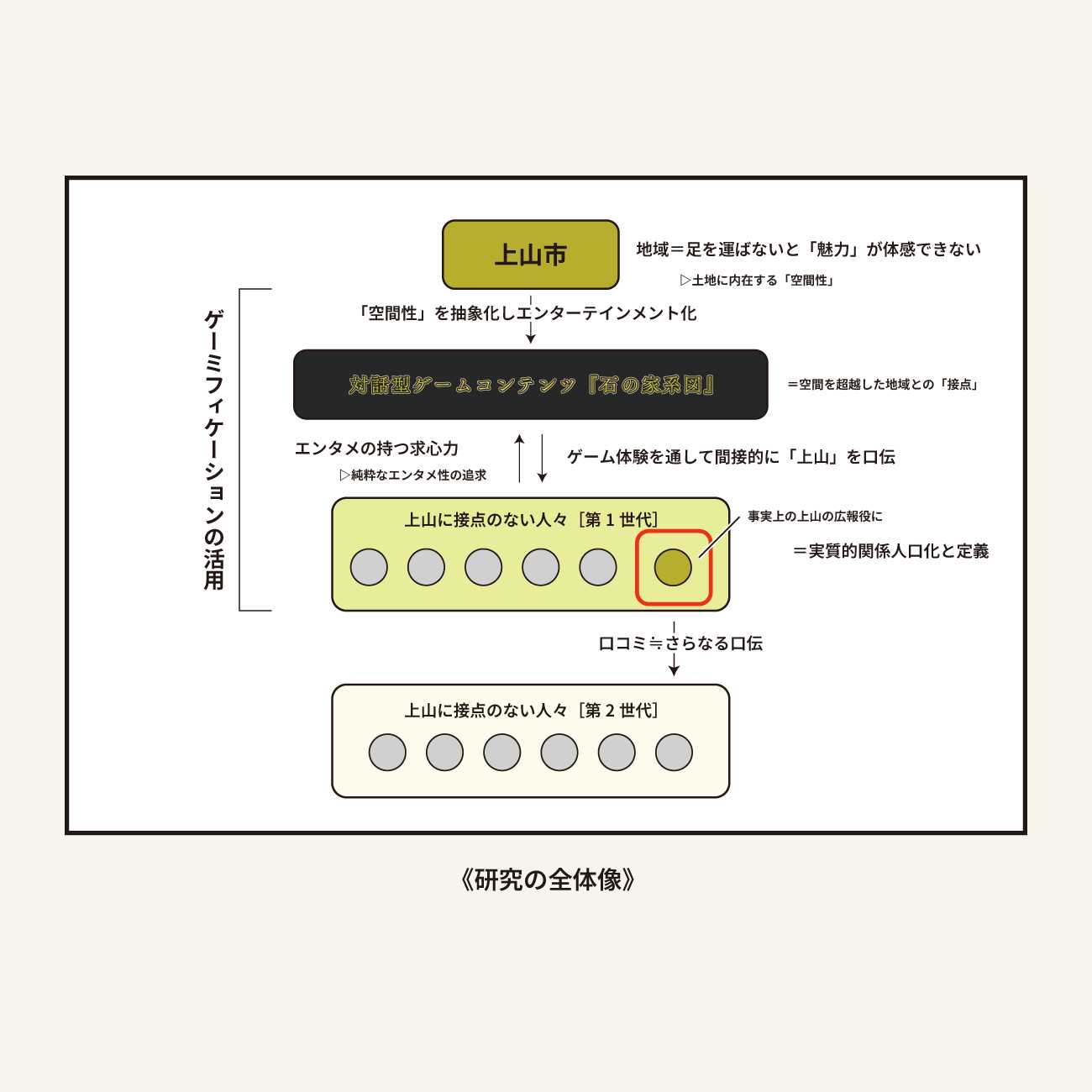 本作品は山形県上山市という地域におけるゲーミフィケーションを活用した生活者とのコミュニケーションデザインの研究です。