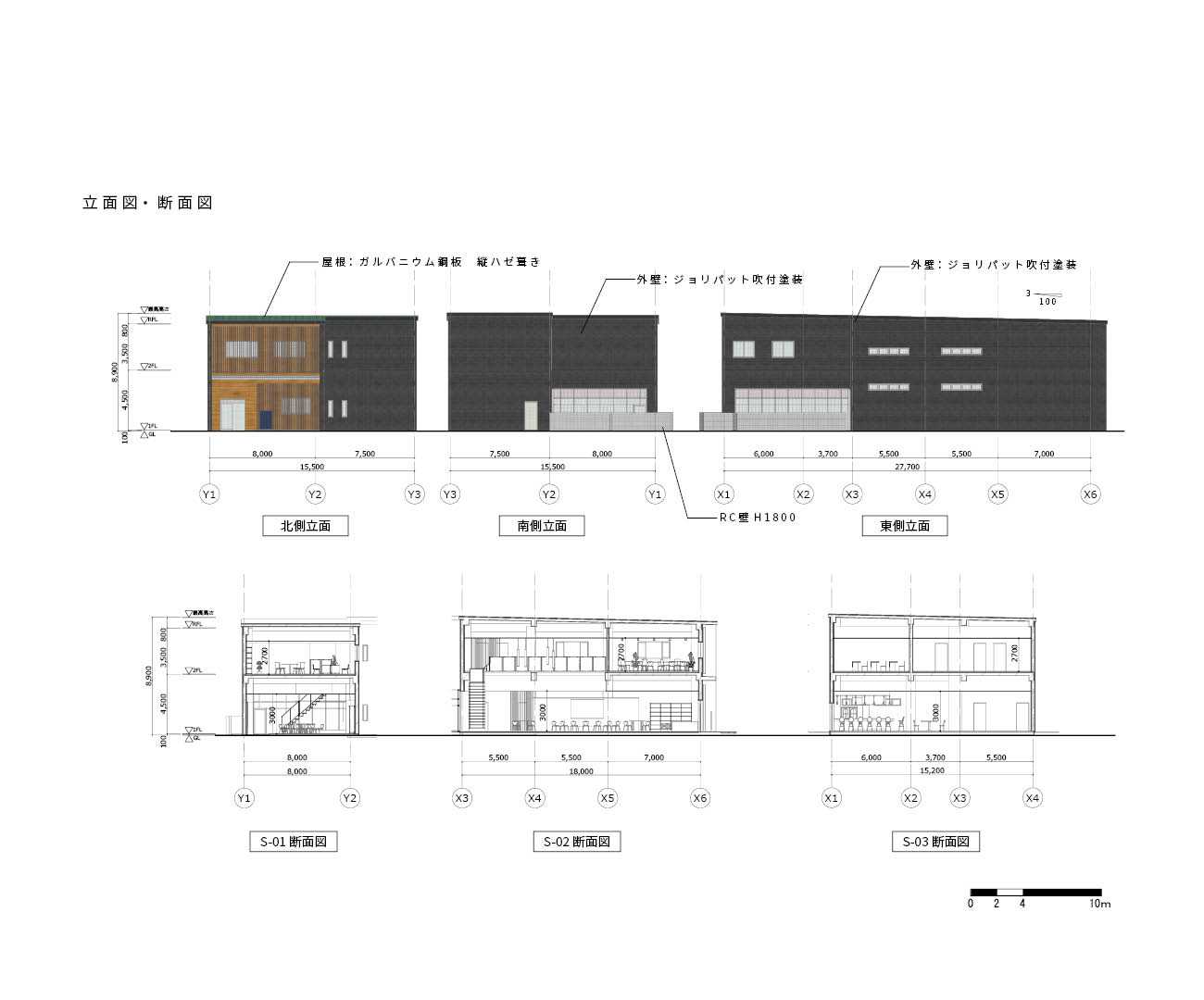 北面(正面):ルーバーで外壁を隠し落ち着いた表情。