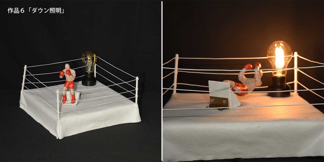 さまざまな「笑い」の要素(コンセプト)と、あかりと光の要素を考えた作品を、10点あまり制作した。ストレスを笑いとあかりで癒す「わライト」シリーズを楽しんでいただきたい。