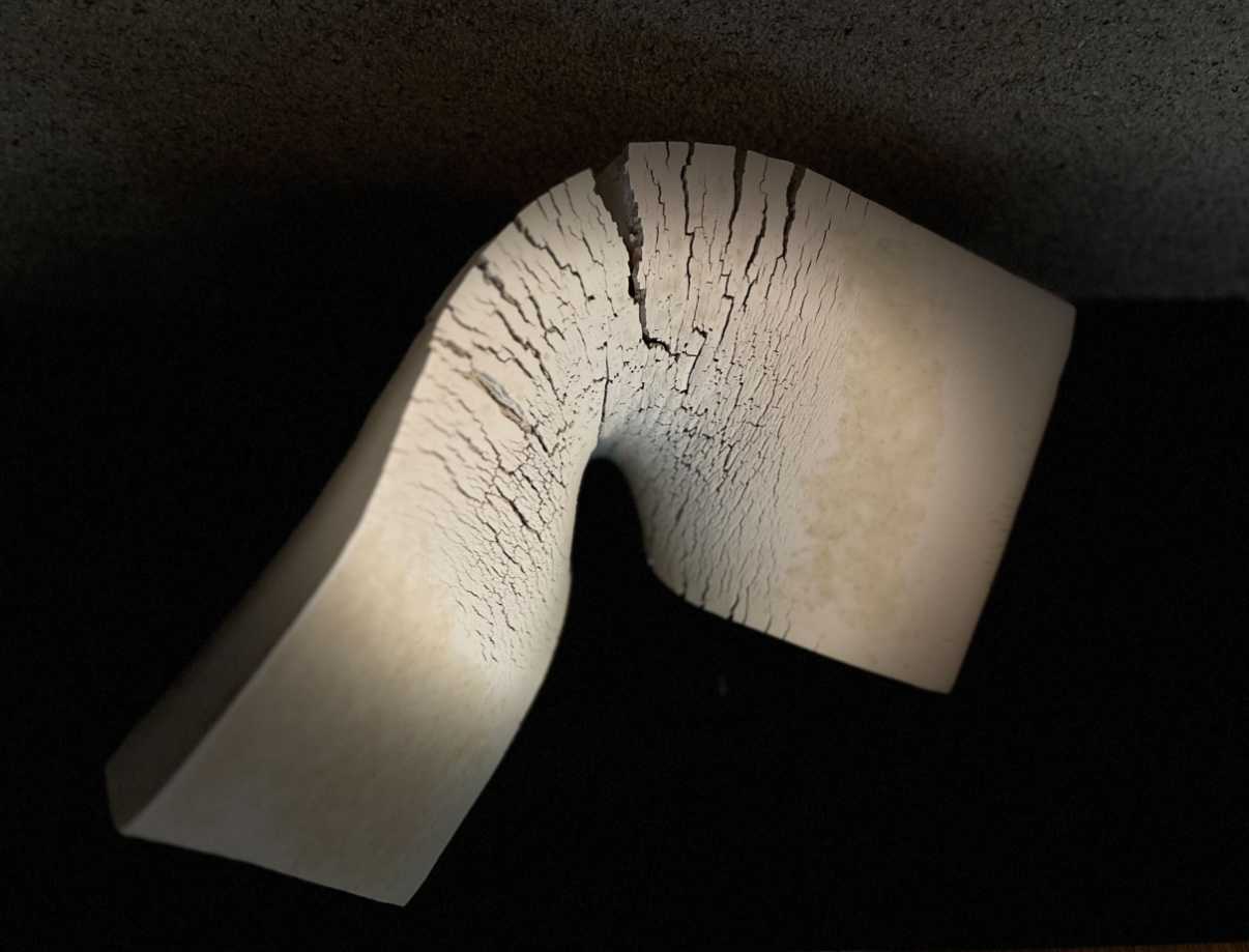 意図:土の亀裂、皺、撓みといった現象などをそのまま作品に取り込むことで、自然の力などを感じさせる作品を制作することを意図しました。また、焼かないことで、土の脆さや変化をそのまま残し、時間とともに変化する様子を観察できるようにしました。これにより、自然と人間の関係を再考する機会を提供し、土の持つ可能性を最大限に引き出すことを目指しました。