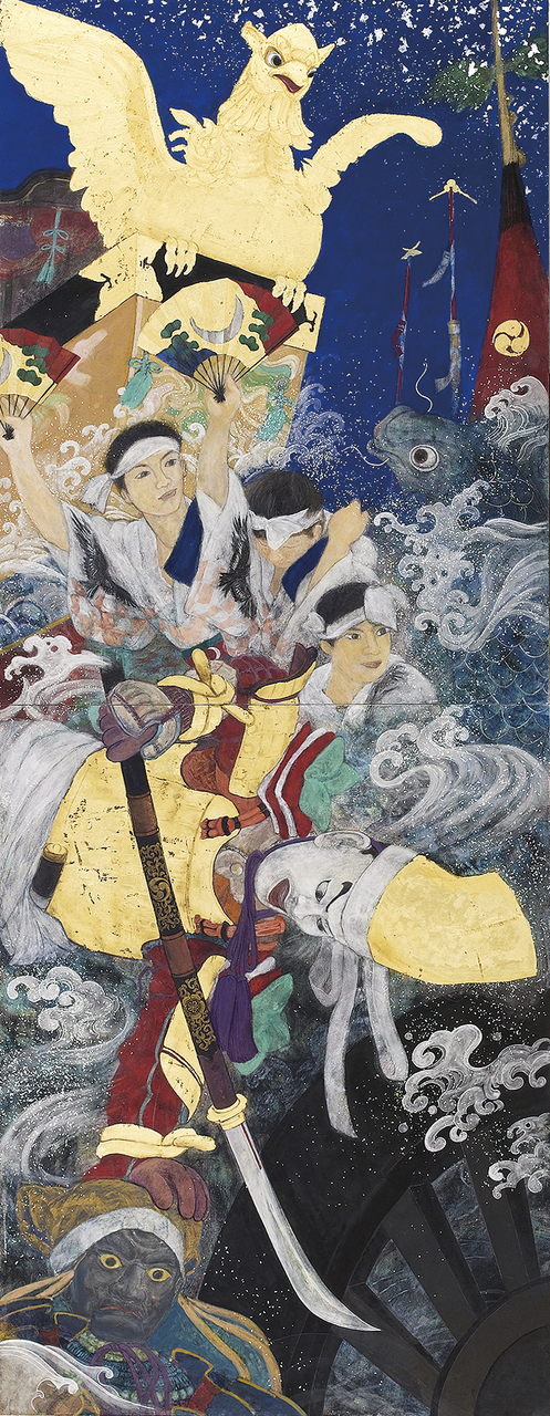 紙本/岩絵具, 水干絵具, 墨, 膠, 箔