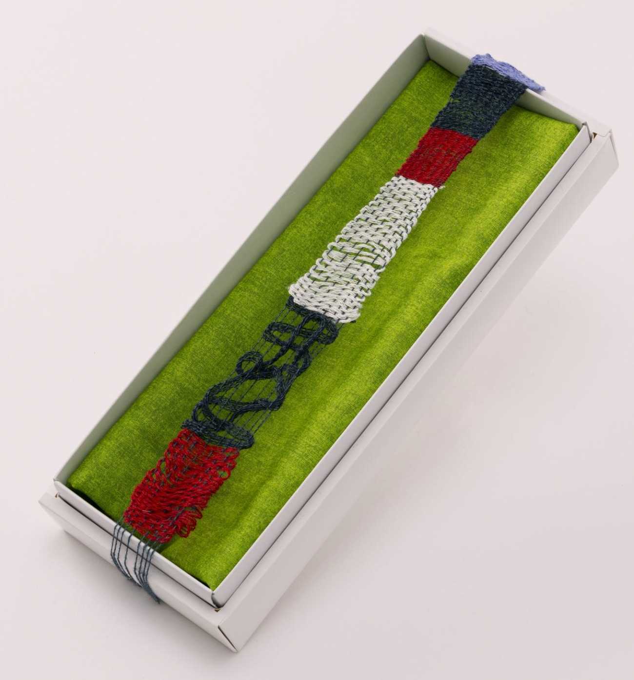 地元福岡県の伝統的工芸品の素材としては、紙、竹、布、木、石、金属、土(陶器)などがある。そのそれぞれの素材に関しては、3R(リデュース、リユース、リサイクル)やSDGsの考えのもとにした理論研究または作品提示は多くある。布(ハギレ)に関しても、「縫う」という方法での研究、出版本は多くみられる。しかし、本研究を進めるに当たって、布(ハギレ)の多様な活用法に関する先行研究を調べたが、見つけることはできなかった。図書館でも協力を得て探してもらったが、布(ハギレ)の多様な活用法に関する書物は見つからず、図書司書の方々も、そのような研究や本は見たことがないということであった。そこで、先行例のない研究であるという点から、本研究は意義あるものであると考える。
