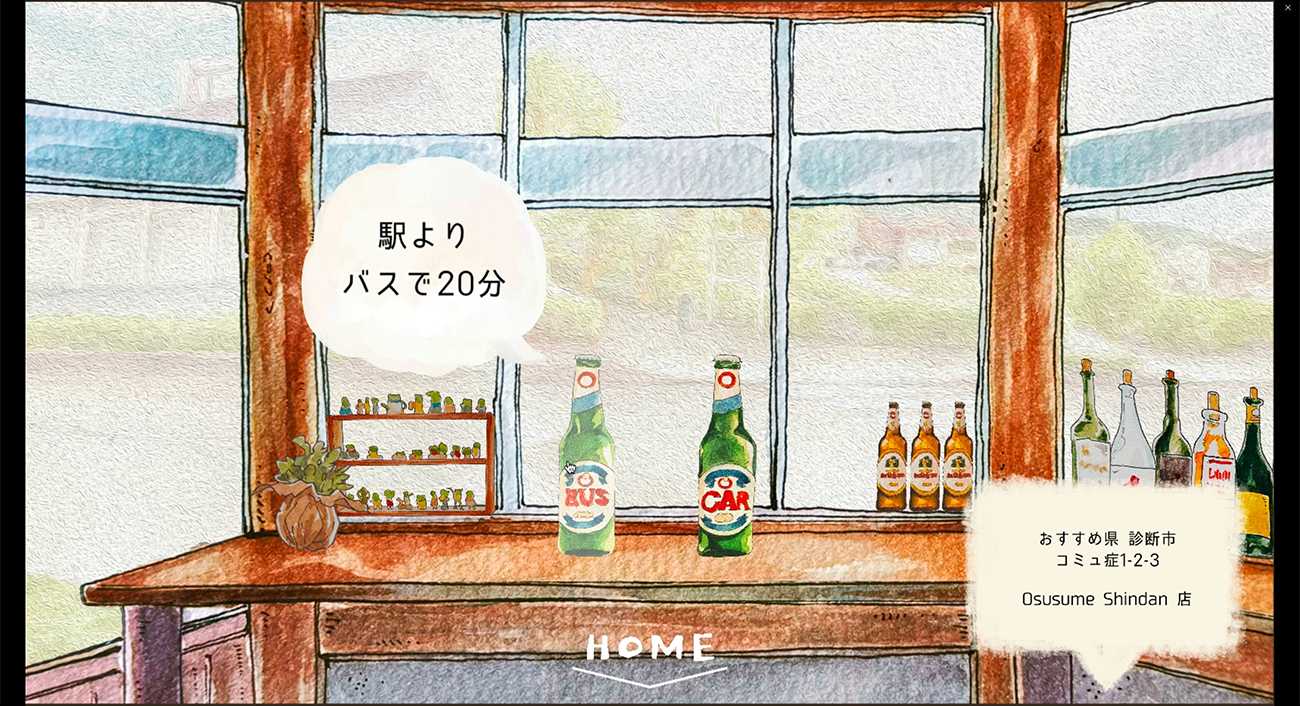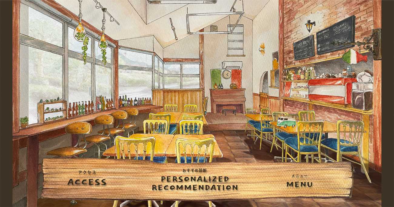 診断内容は、直接シェフにインタビューした内容をもとに構成されており、料理の材料から調理法に至るまでが考慮されています。また、お料理のあたたかさと、店内の過ごしやすい雰囲気を感じていただくために、すべてアナログの水彩画で制作し、お料理の名前や診断質問のフォントも、すべて手書きの筆文字で書いております。本コンテンツの体験者に、あたたかな印象をお持ちいただけるよう、柔らかなタッチを意識した、診断コンテンツです。