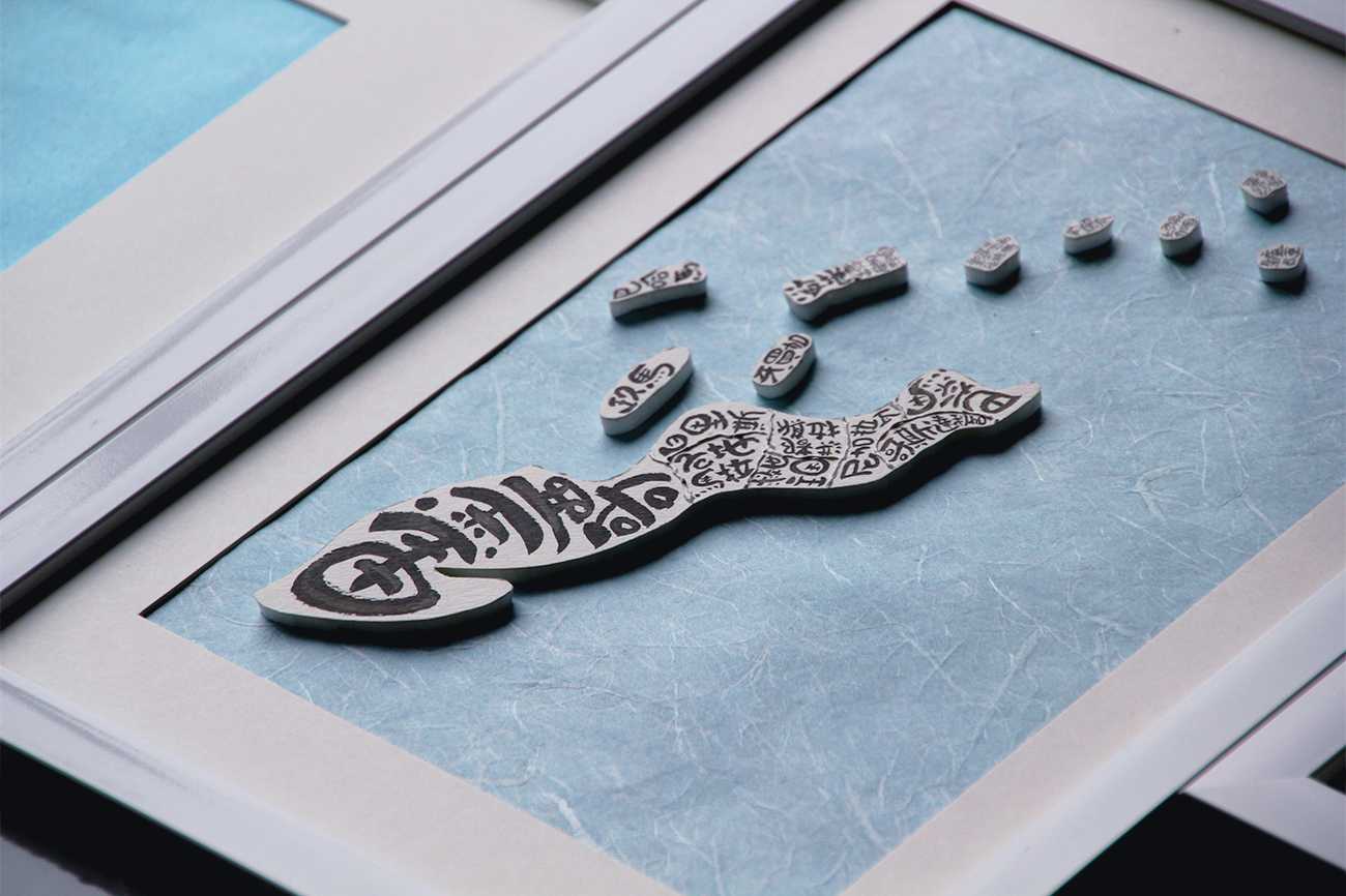 「漢字で彩る世界」は、日本政府が承認する196カ国の国名をもとに、それらを漢字化し筆ペンで描いた世界地図です。漢字は、日本文化を象徴する文字であり、情報を伝えるという役割にとどまらず、造形物としても美しく、多くの人々を惹きつける力を持っています。