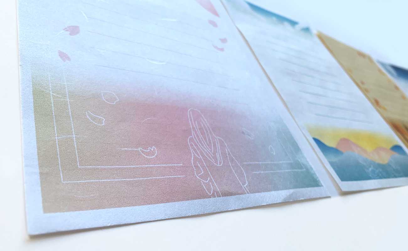 物語ごとのイラストをアレンジし、便せんのデザインに取り入れた。物語を通じて得られた感動をそのままに、大切な相手へ想いを伝える手紙を書いてもらうことを目的としている。