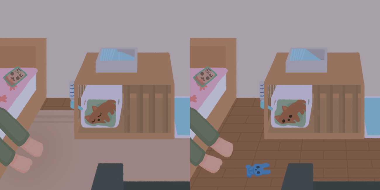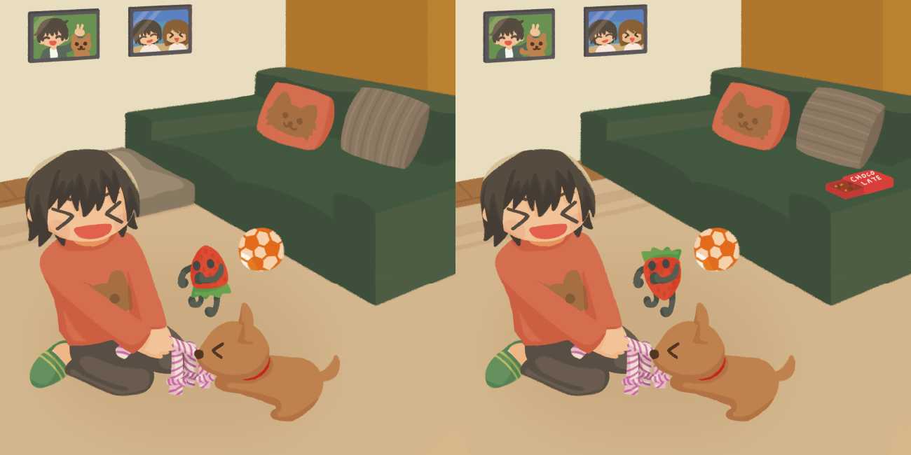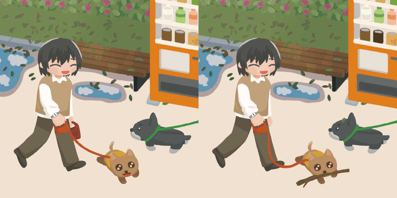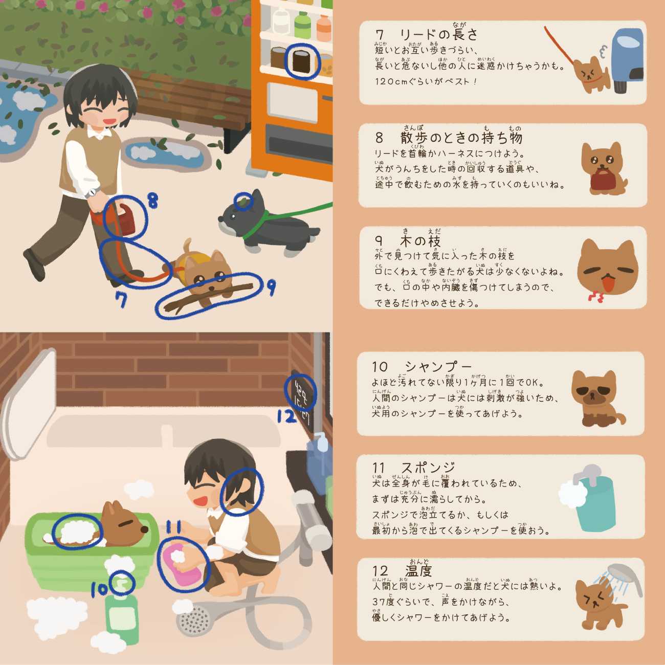 「犬」は人間と同じ、生き物。でも「犬」は人間と違う、生き物。これから犬を飼いたいと思っている人や、すでに犬を飼っている人に向けて、その2つを改めて確認してほしくてこの作品を制作しました。まちがいさがしを通して、大人だけでなく子どもたちにも遊びながら犬について考えてほしいです。