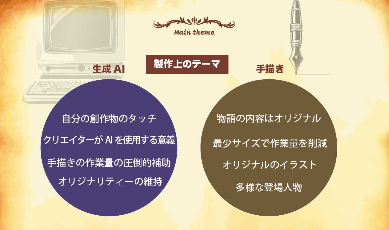 制作上、一番気をつけたのはAIの使用はあくまでも自分で描いたイラストを基に制作することでした。