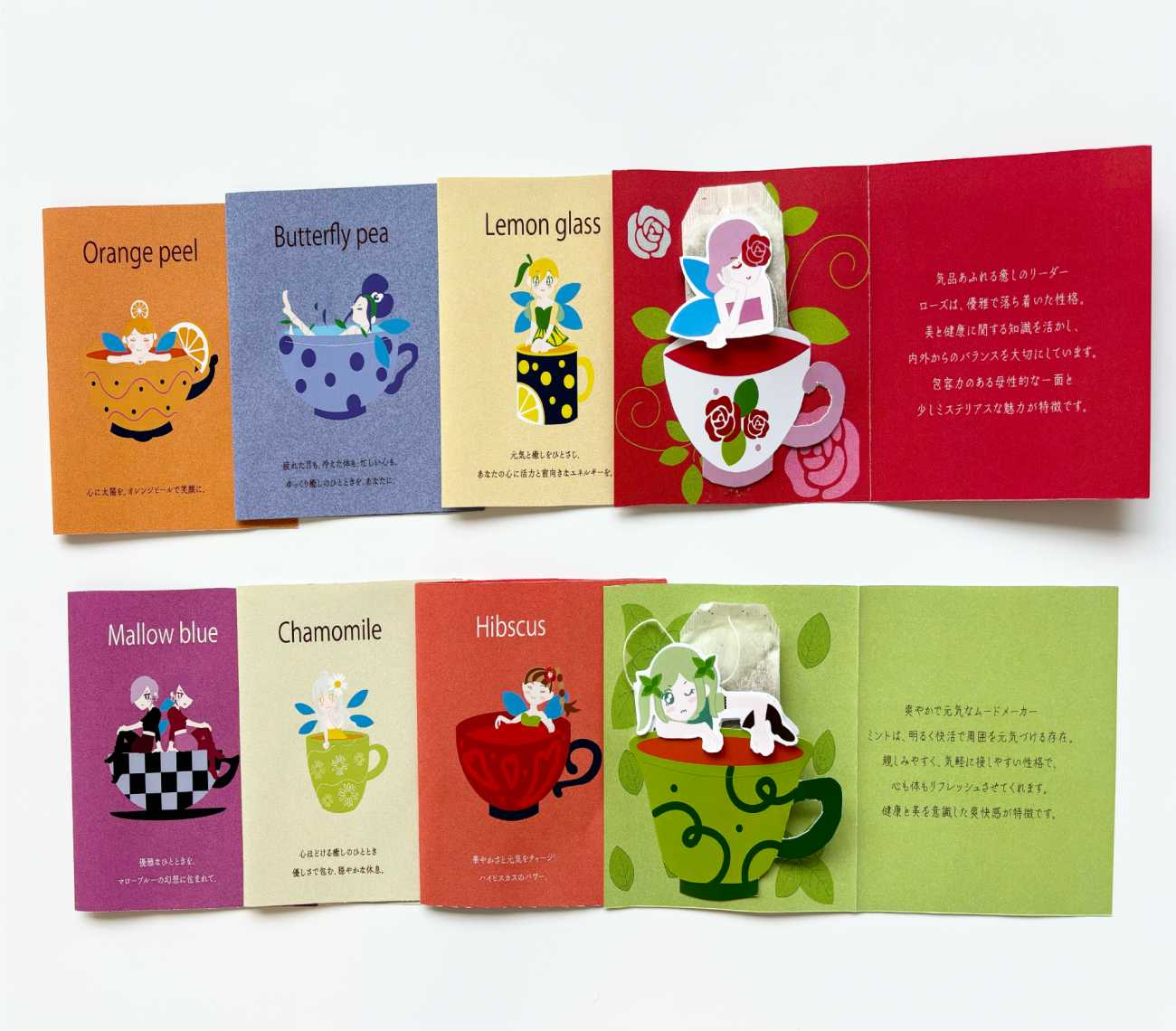 8人のお茶の妖精たちが、日々忙しく過ごす人々の心と体をそっと癒してくれます。