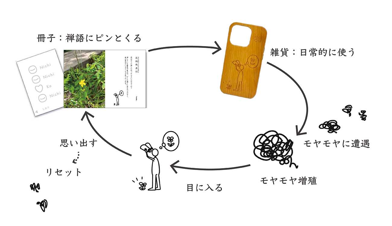 日日♡日は、こうした禅語のヒントを雑貨に込めて、冊子と一緒に提案するブランドです。