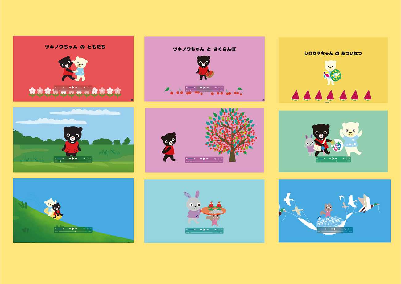 キャラクターが生き生きとした存在になるためには物語の背景が●です。3つの物語を絵本と映像に展開しました。テーマは「たがいをよく知る」「わかちあう」「たすけあう」です。他文化理解教育の要素を幼児の発達にブレイクダウンしたテーマになっています。絵本は保護者の読み聞かせを前提としていますが、映像は読み聞かせの参考にもしてもらえる内容です。
