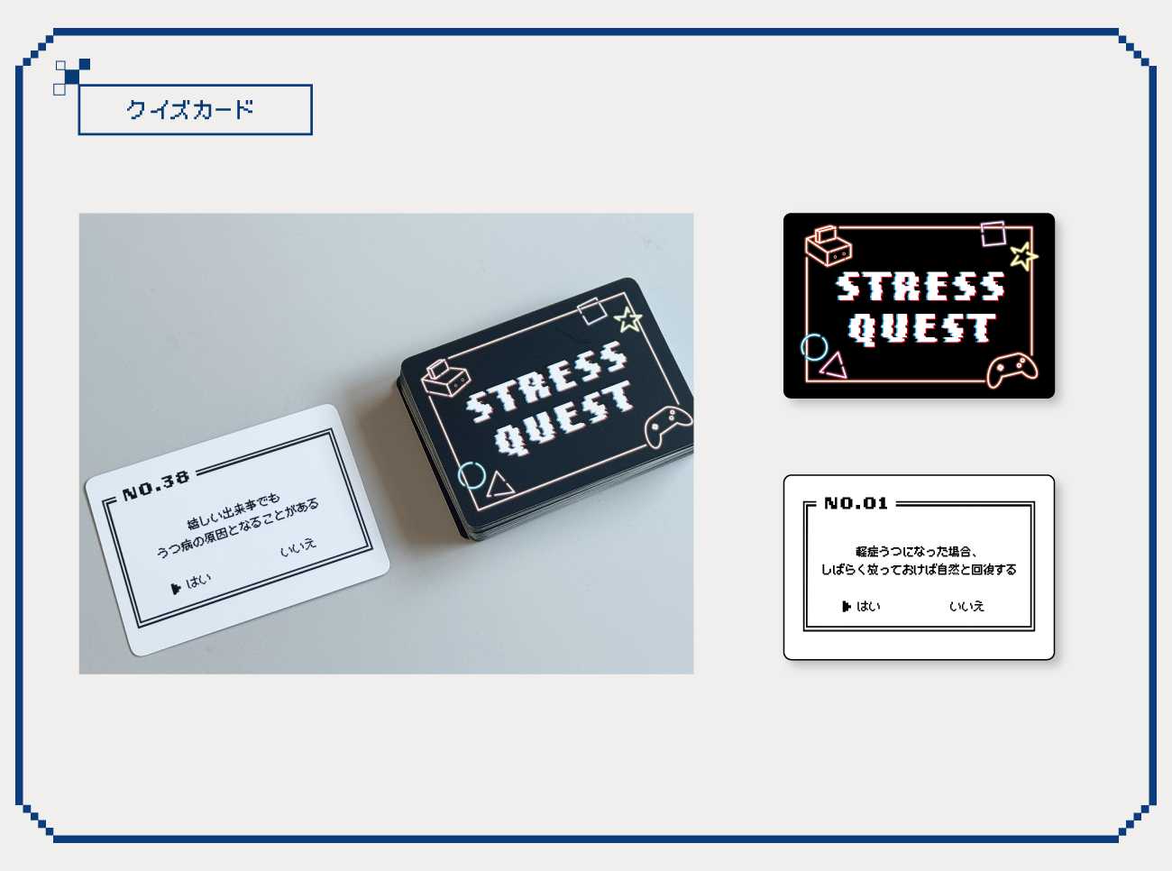 カードに書いているクイズに答えることでストレスやメンタルヘルスについて学べます。