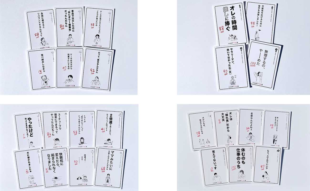 「いいわけがいいわけ展」では、そんな日常の言い訳をユーモアに捉え、点数をつけながら紹介しています。点数の基準は、主観です。まずシンプルに「じゃあ、しょうがないね」と思えるかどうか。そして、「これって自分にもあるなぁ」とか、思わずクスッと笑って許してしまう言い訳には、甘い点数を。「それはさすがに無理」と思う言い訳には、少し厳しい点数がついています。