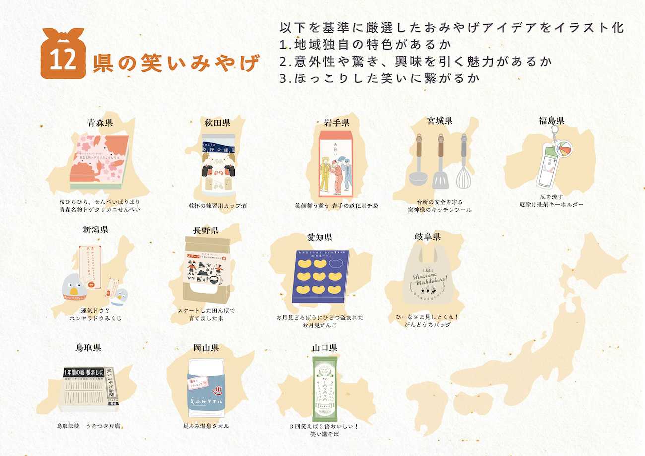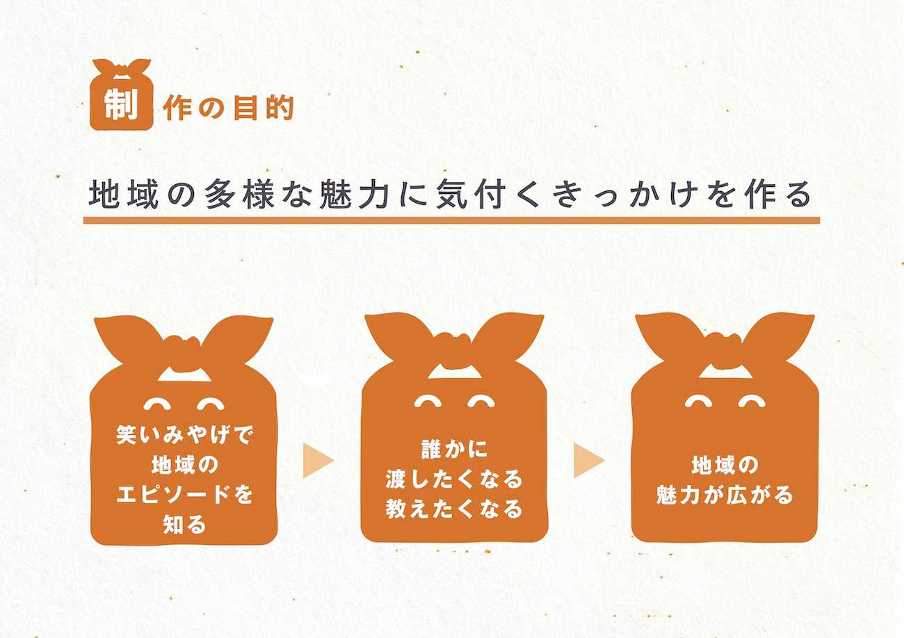 地域の文化や習慣に親しみながらも、くすっと笑えるようなおみやげになるよう工夫しました。