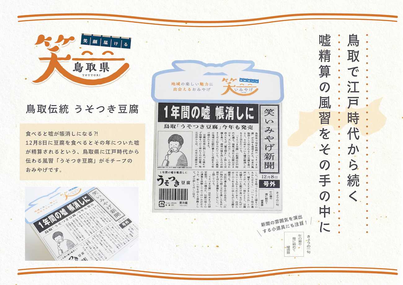 【鳥取県】インパクトのあるコピーを大きく入れ、目を引くアイテムに。本物の新聞の雰囲気に近づけるため、わら半紙にリソグラフで印刷しました。