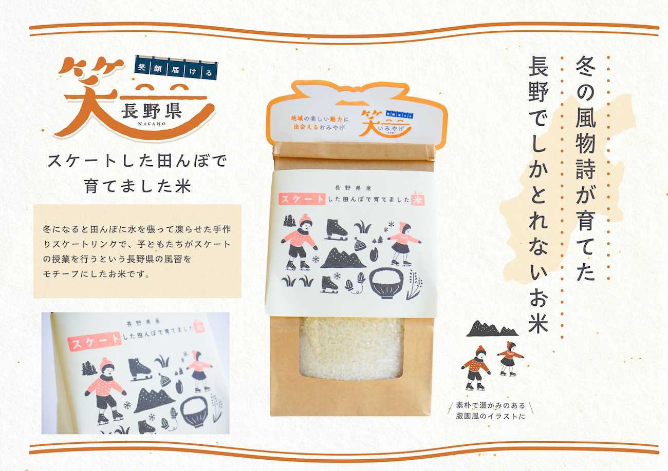 【長野県】地域の子どもたちが滑った田んぼで育ったお米は、まさに地域ならではの魅力を伝えるおみやげにぴったり!と思い、制作しました。