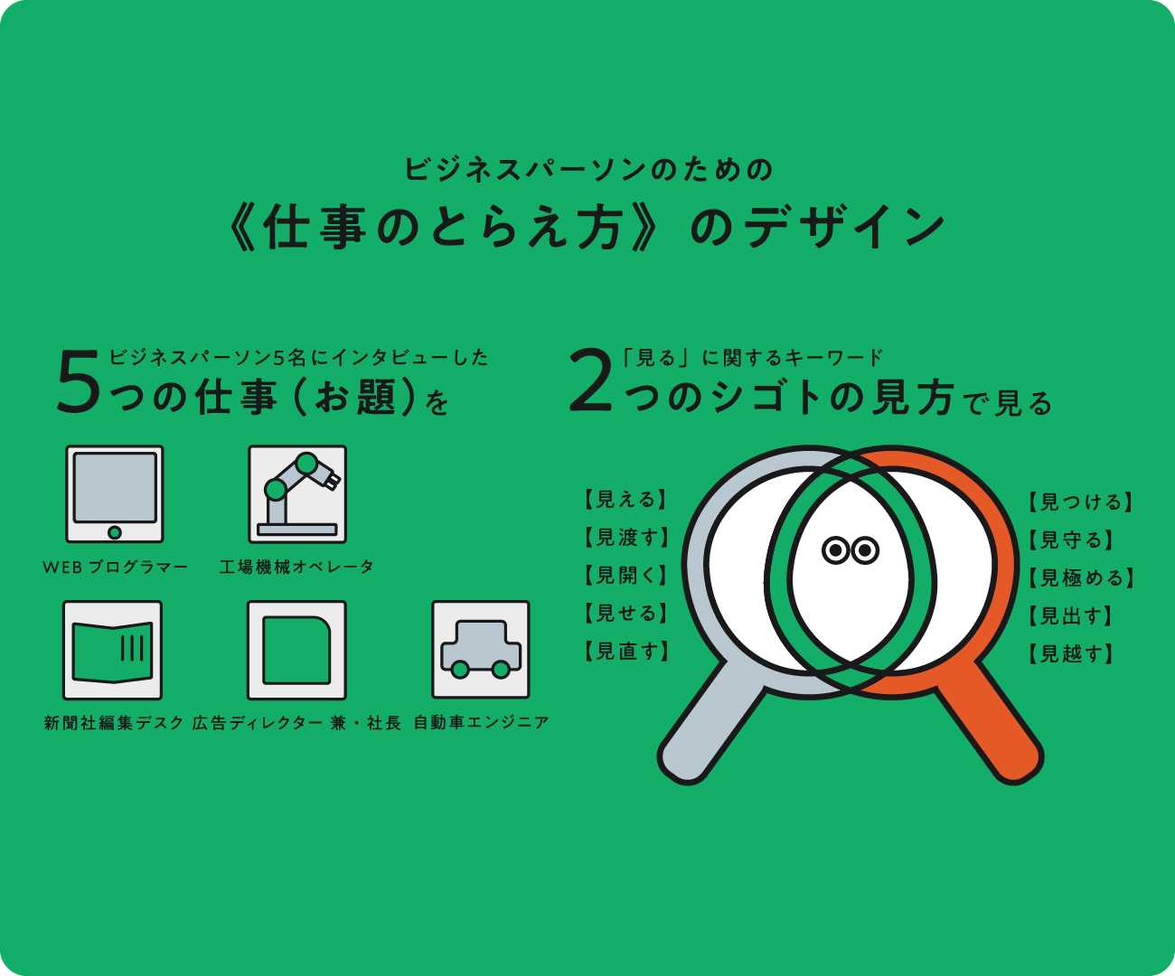 本作品は、「仕事のとらえ方をデザインする」をコンセプトにしたビジュアルブックです。